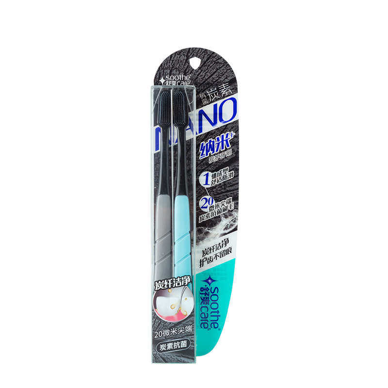 📚 舒爽纳米炭护牙刷成人款超细软毛竹炭抑菌小头男女家用2只组合装