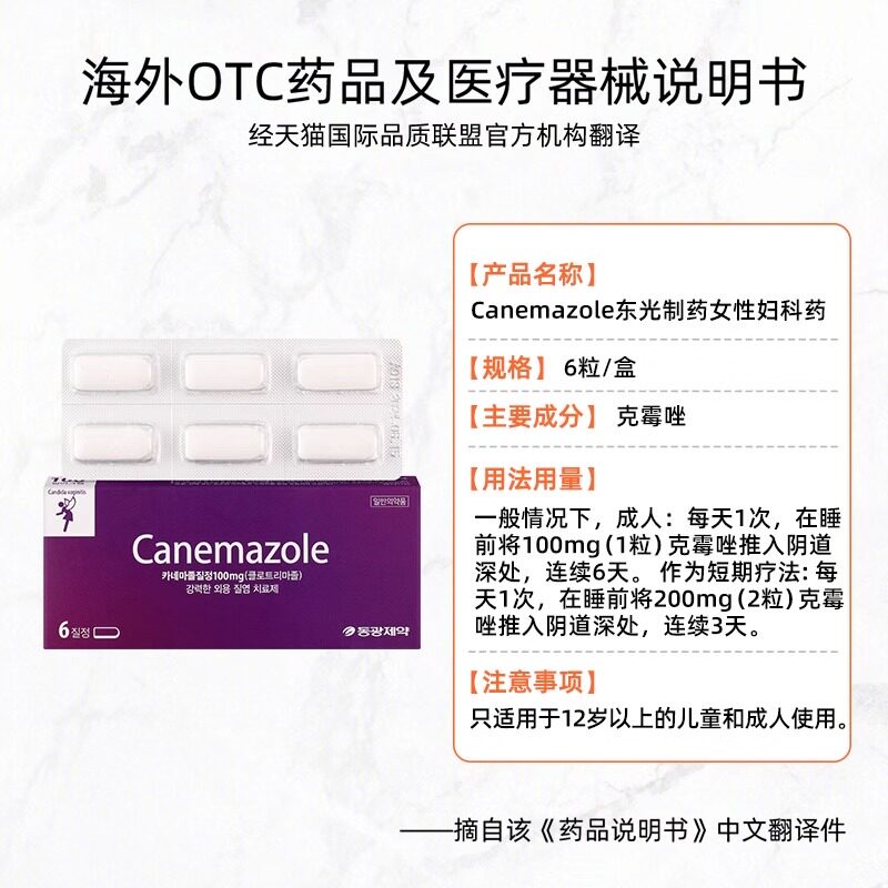 📣朋友们,如果你也有类似的困扰,不妨试试这款韩国canemazole东光制药的妇科药念珠菌性阴道炎症霉菌栓剂。相信我,它会给你带来意想不到的惊喜!