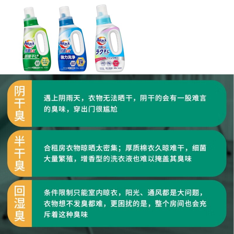 📚 【自营】花王洗衣液阴干无异味720g 防汗臭酵素洁霸洁净易漂洗