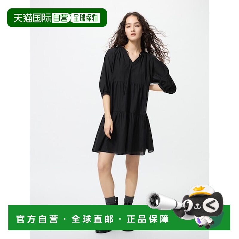 📚 日潮跑腿UNIQLO优衣库 分层迷你连衣裙3/4 袖 09 BLACK WOMEN 3XL
