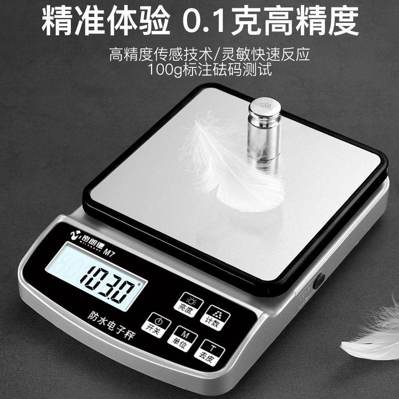 📚 防水电子秤家用小型中药厨房秤高精度称量器烘焙克称精准调料克重