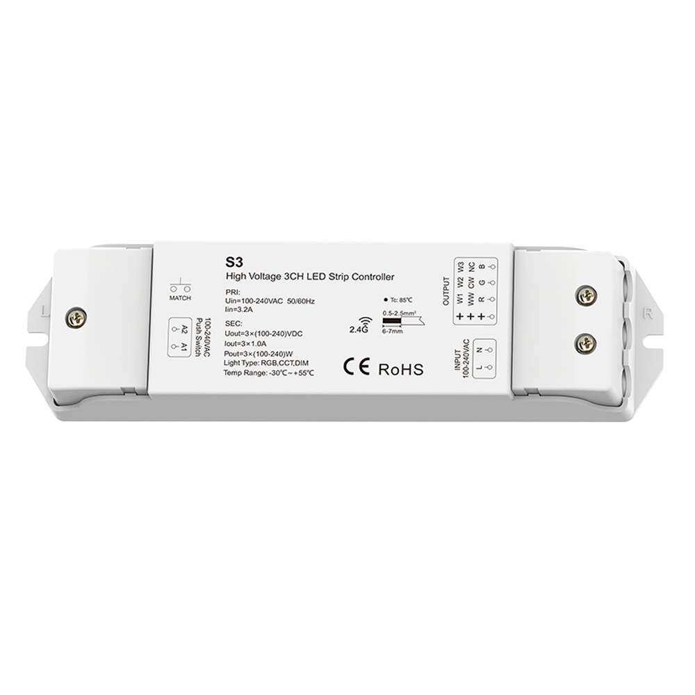 📚 S3 100-240VAC 3CH 1A/CH RGB/?温/调光三通道?压RF控制器 PUSH
