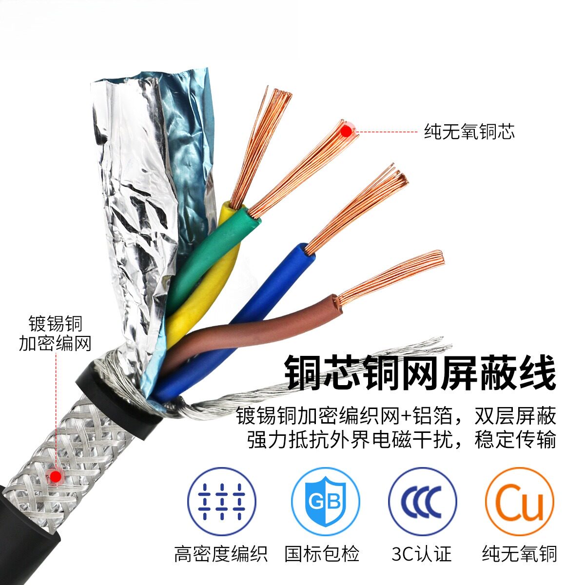 📚 RVSP/RVVSP双绞屏蔽线0.2/0.3/0.5平方2/4/6芯rs485通讯信号线