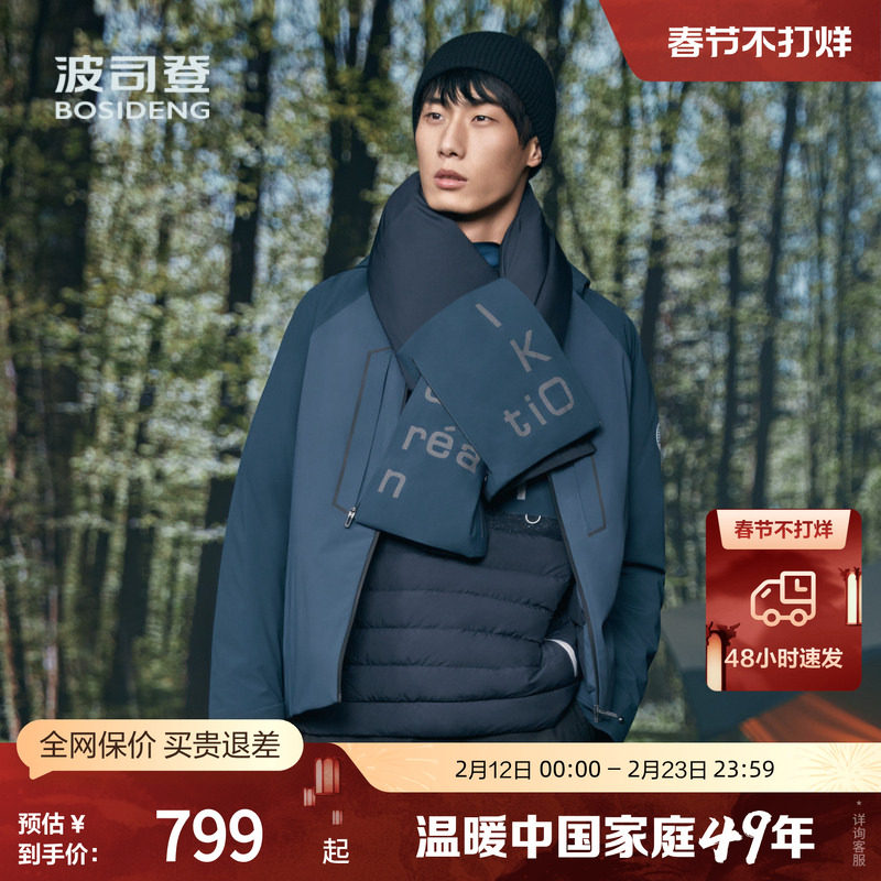 📚 【鹅绒】波司登男士舒适带围巾厚羽绒服潮流连帽外套一衣多穿