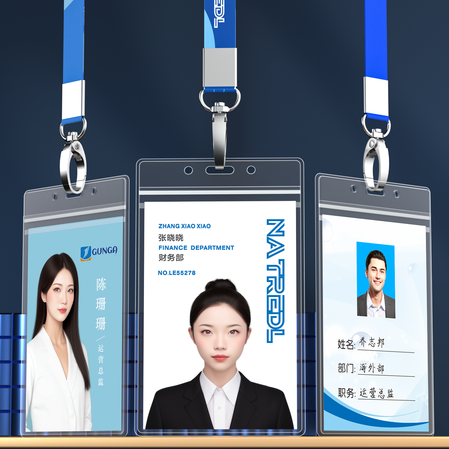 📚 中号加厚透明工作证卡套带挂绳胸牌证件套双面PVC卡套学生会校牌保安工牌超市工作牌卡套员工工作证厂牌壳子