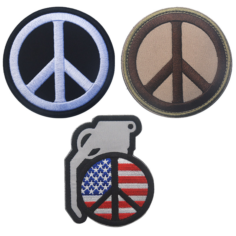 📚 亚马逊货源反战刺绣魔术贴章圆形臂章和平标志背包贴章棒球服胸章