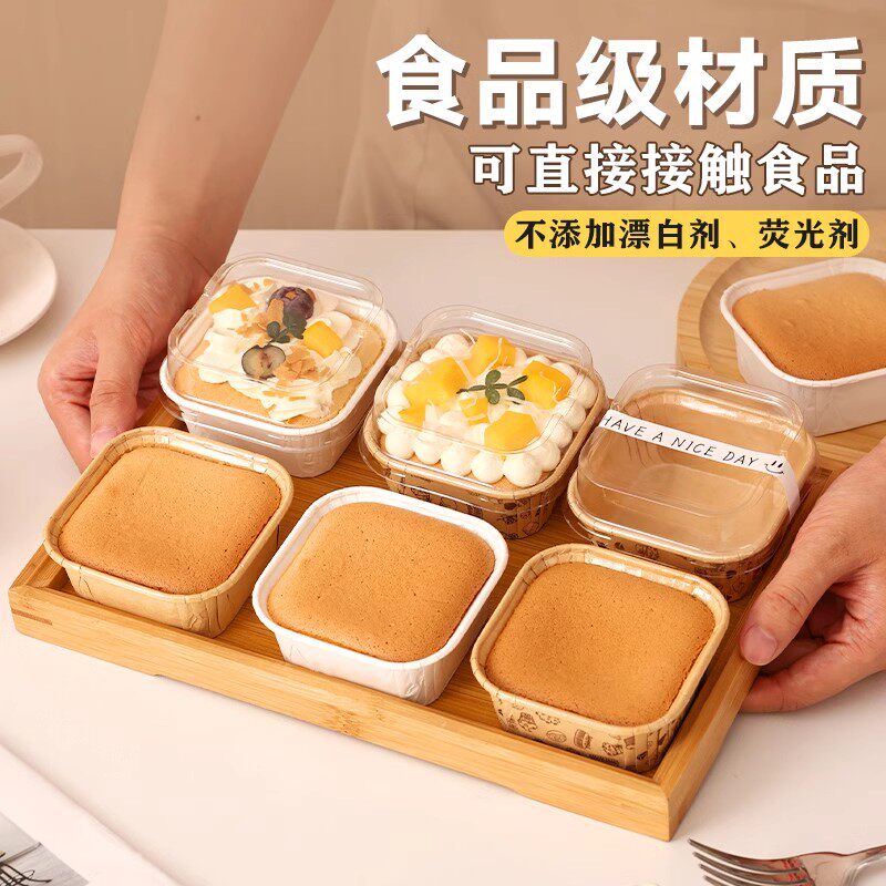 📚 纸杯蛋糕一次性带盖方形模具烘焙纸托食品级包装盒专用耐烤防