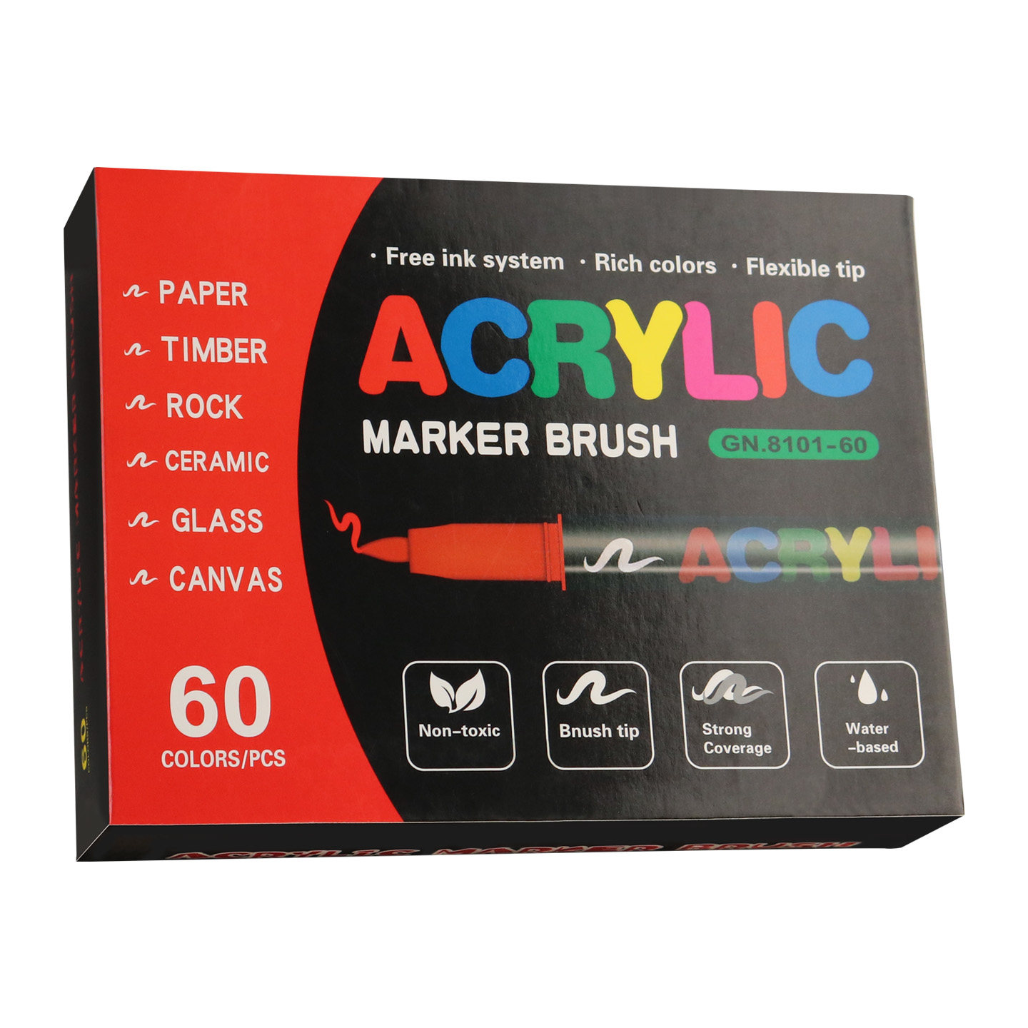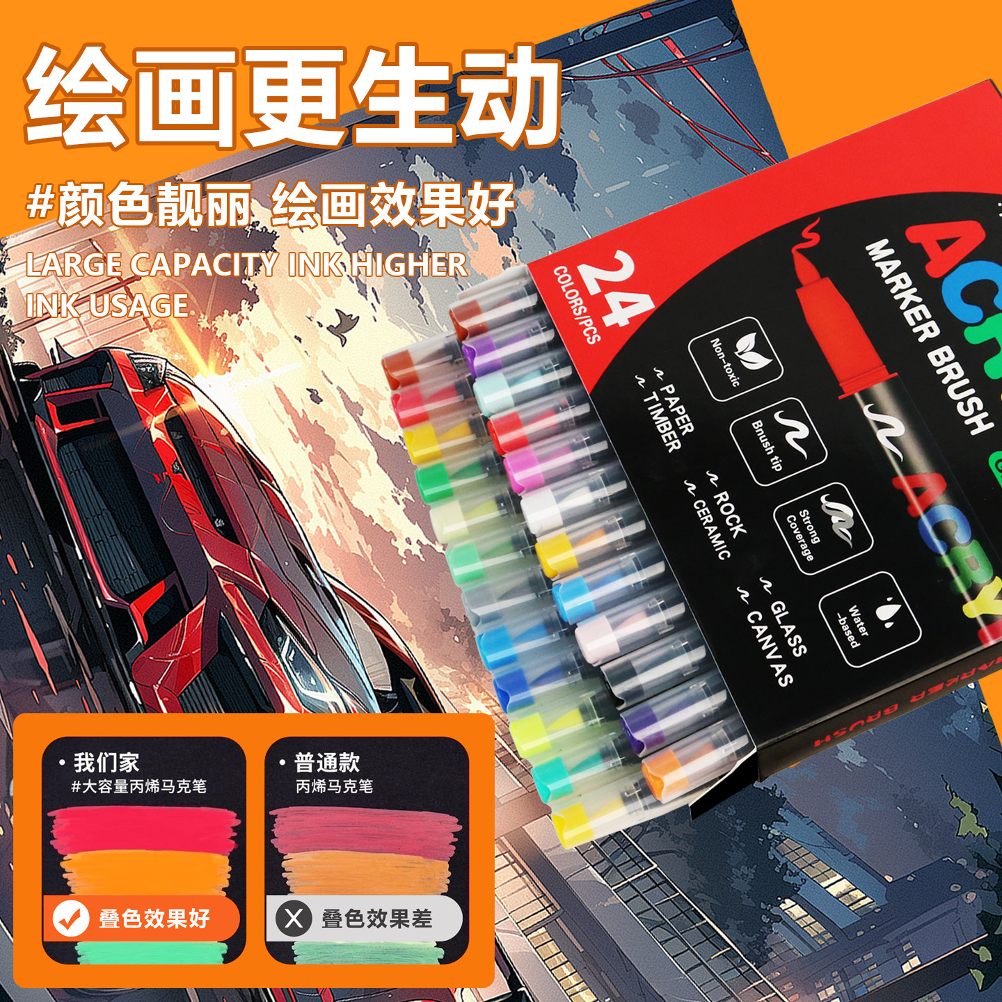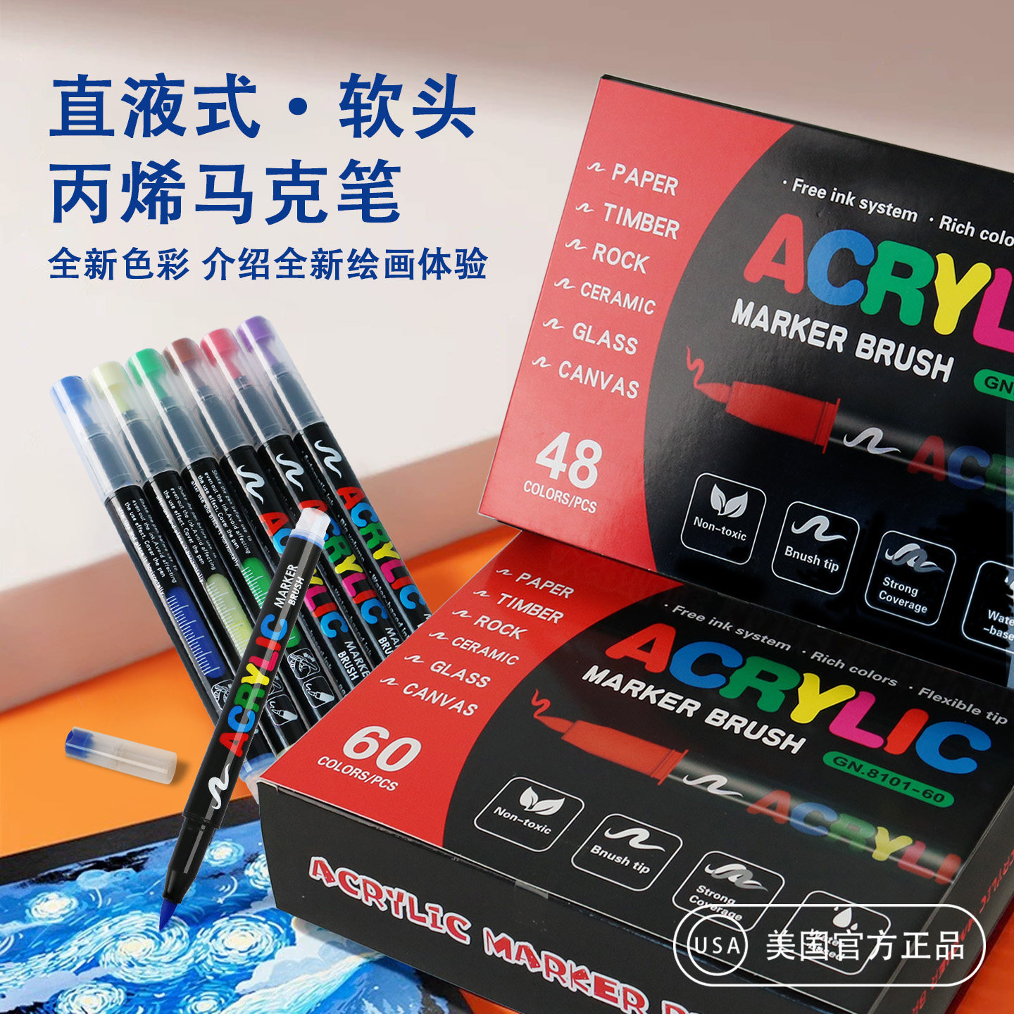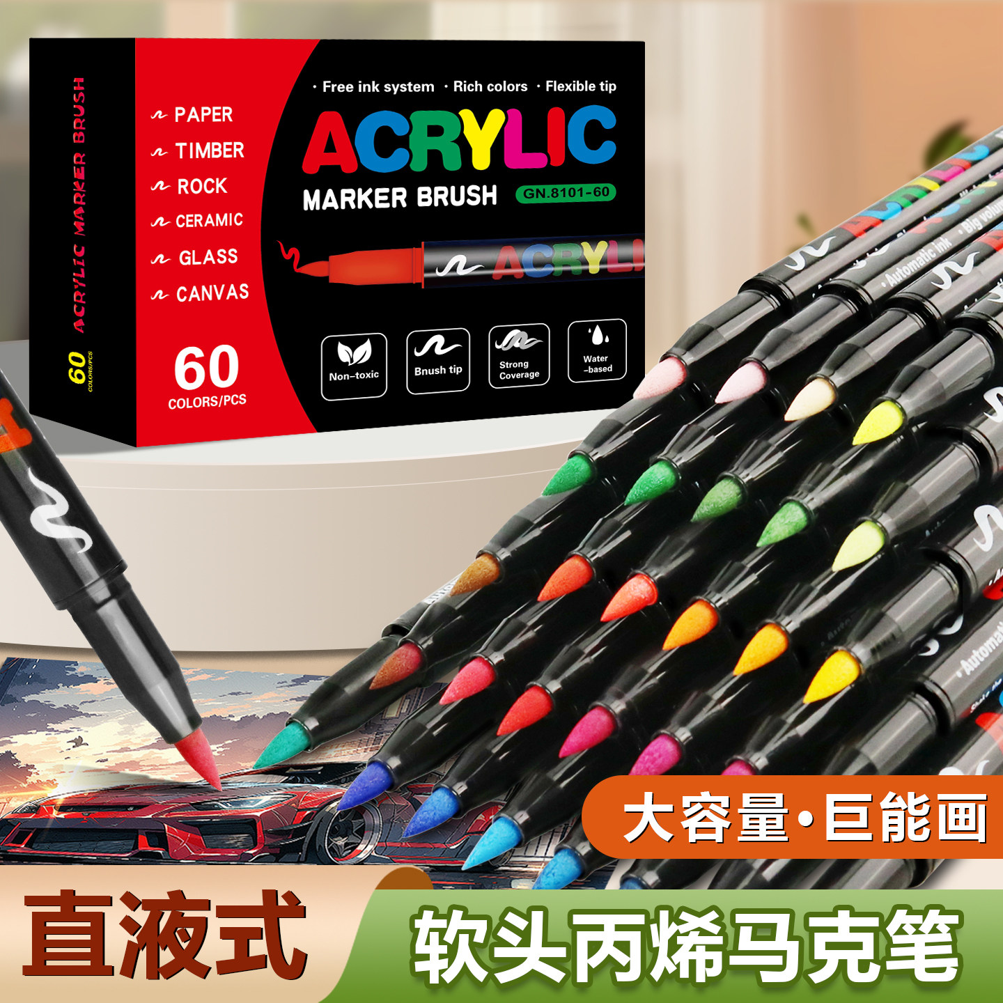 📚 直液式软头丙烯马克笔60色免按压学生专用不透色可叠色水彩笔流畅出墨美术专用无毒水性墨DIY画画涂鸦可水洗