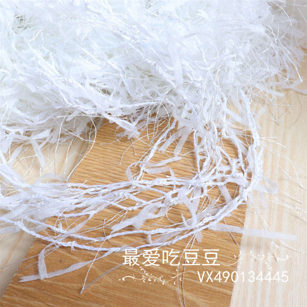 📚 纯白色毛线豆豆带子花式纱宽纸片牙刷透明纱混线配线可手工染胚纱