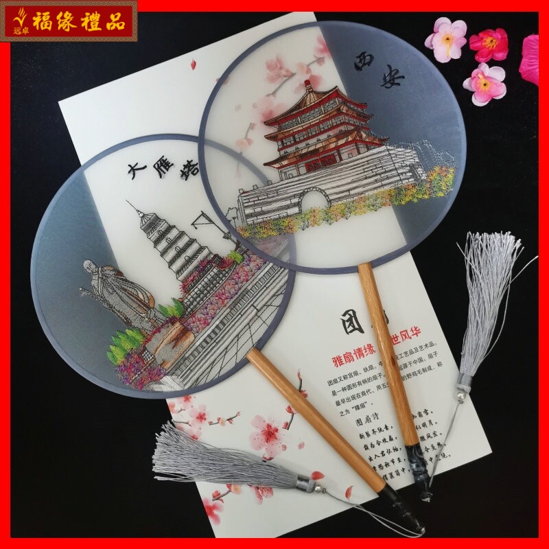 📚 西安景点建筑刺绣团扇单面绣花团扇国风女扇汉服摄影陕西文创礼品