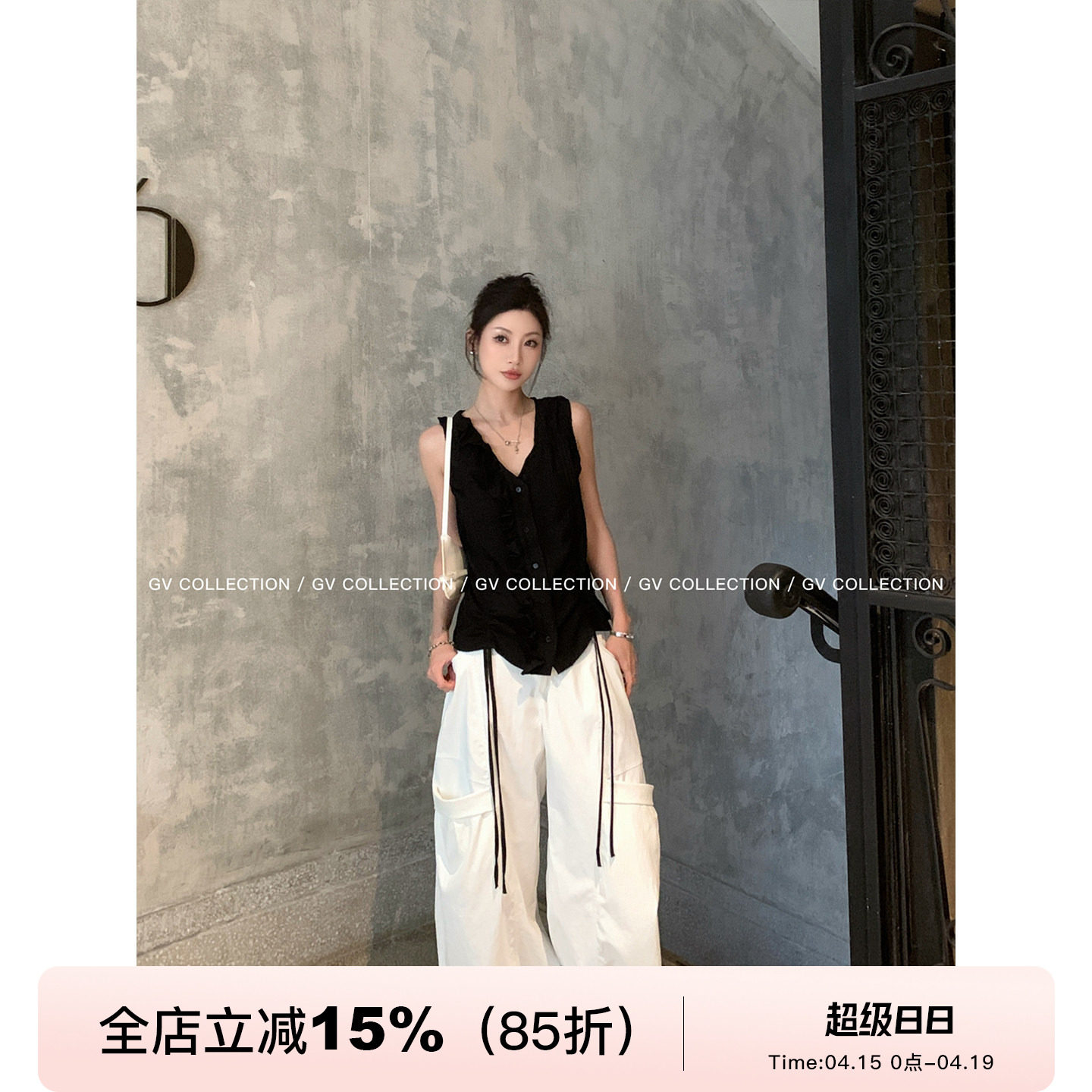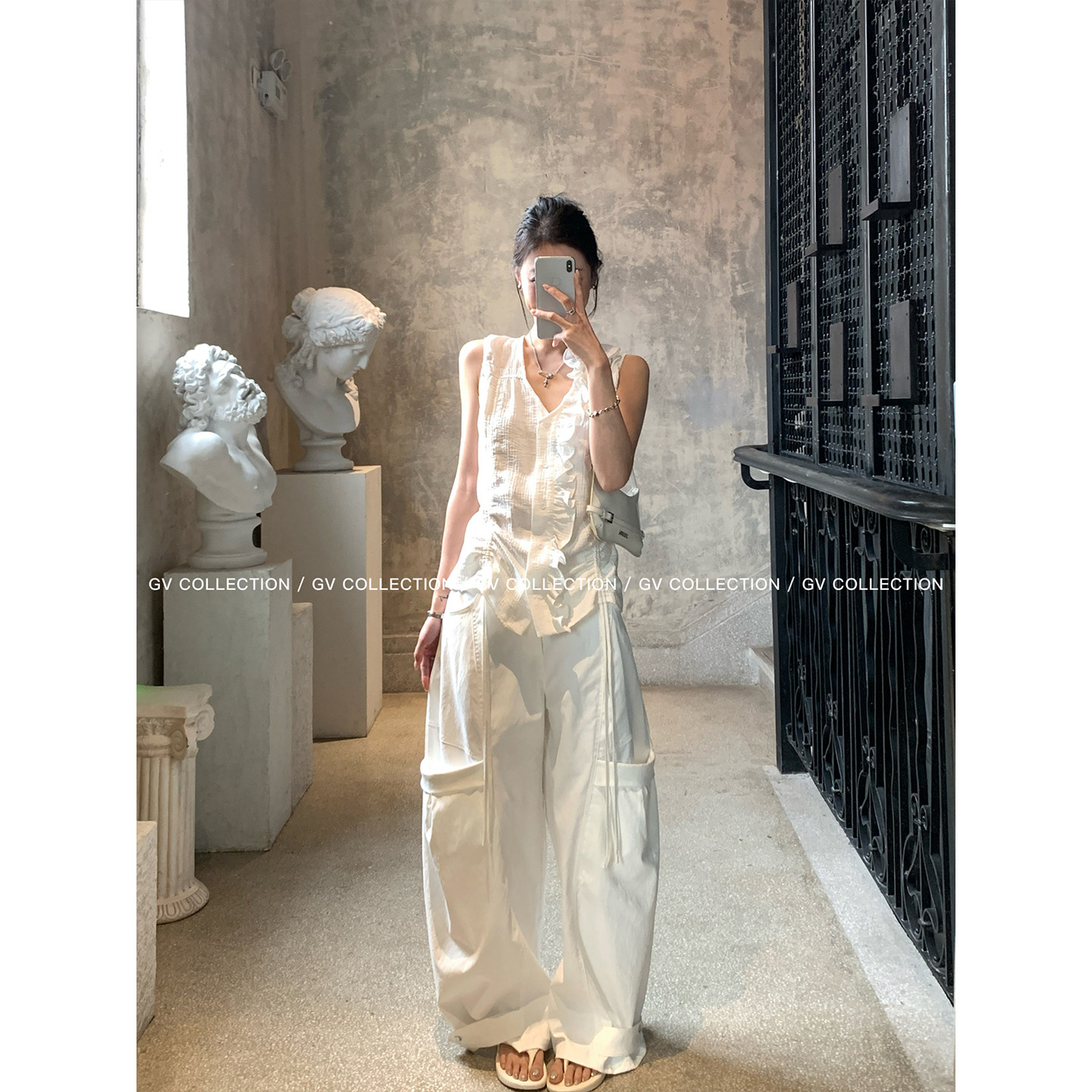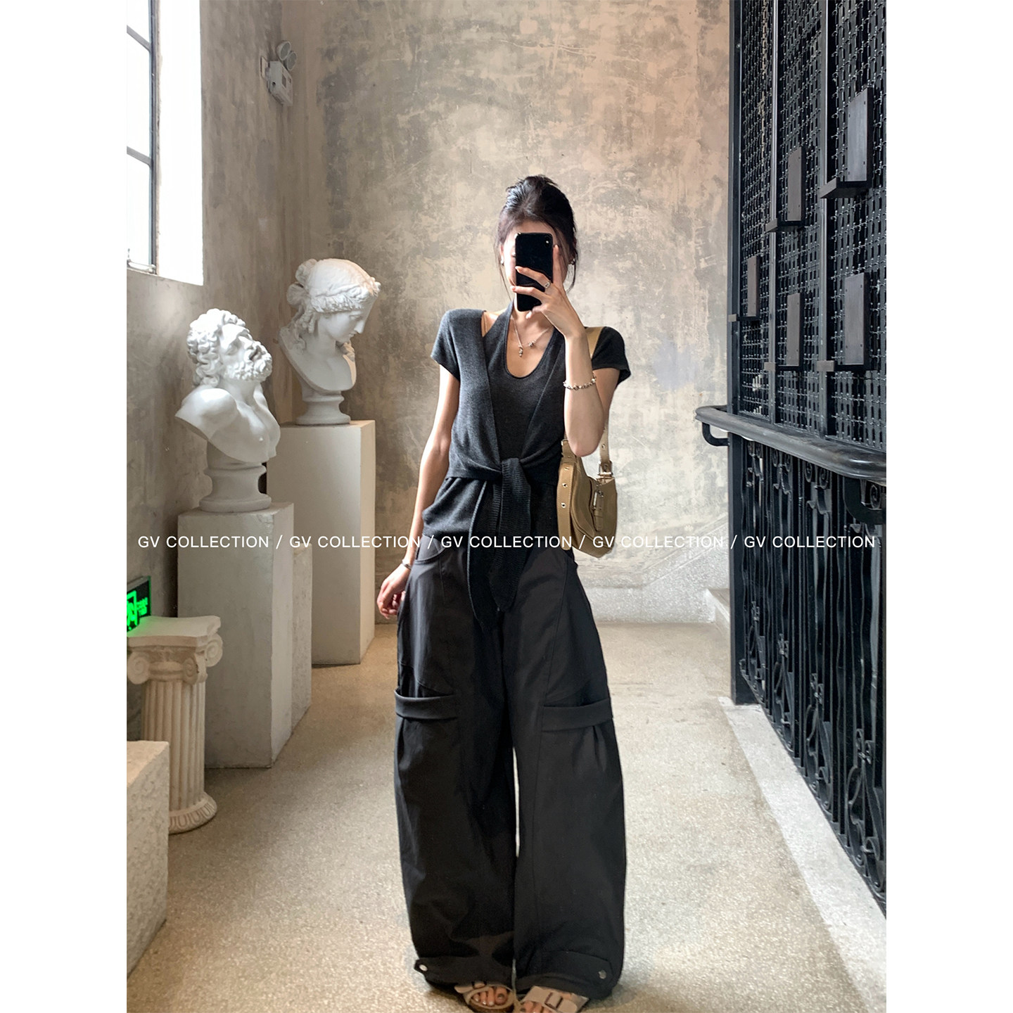 📚 GV大白哥 慵懒造型 侧口袋直筒镰刀可调节下摆工装休闲裤子夏新款