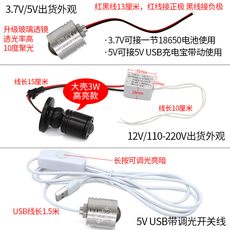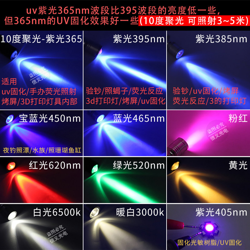📚 365nm紫光小射灯uv聚光10度固化手办荧光玉石usb3w紫外395紫外12v