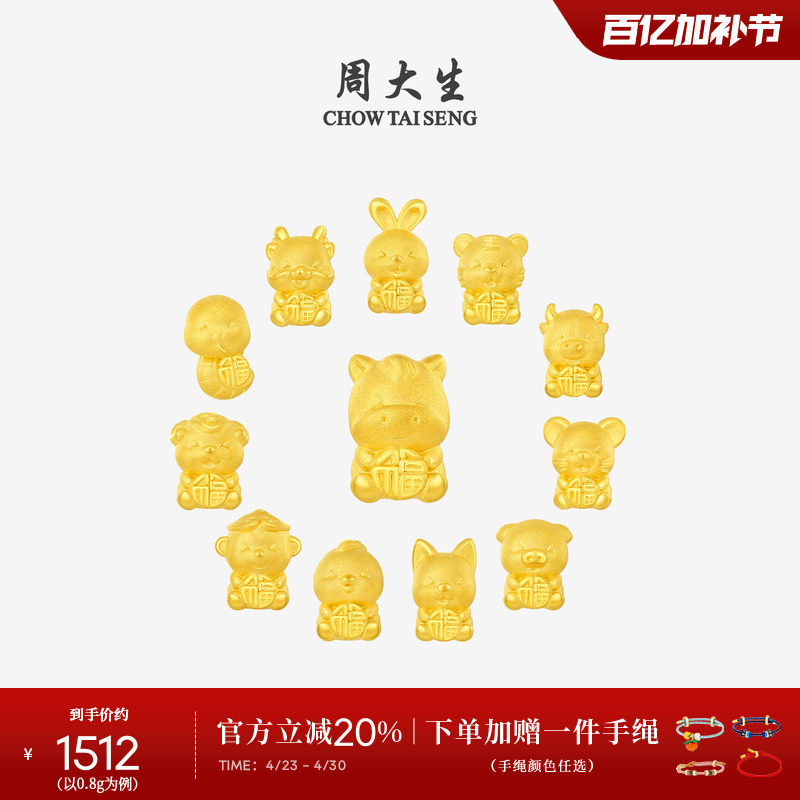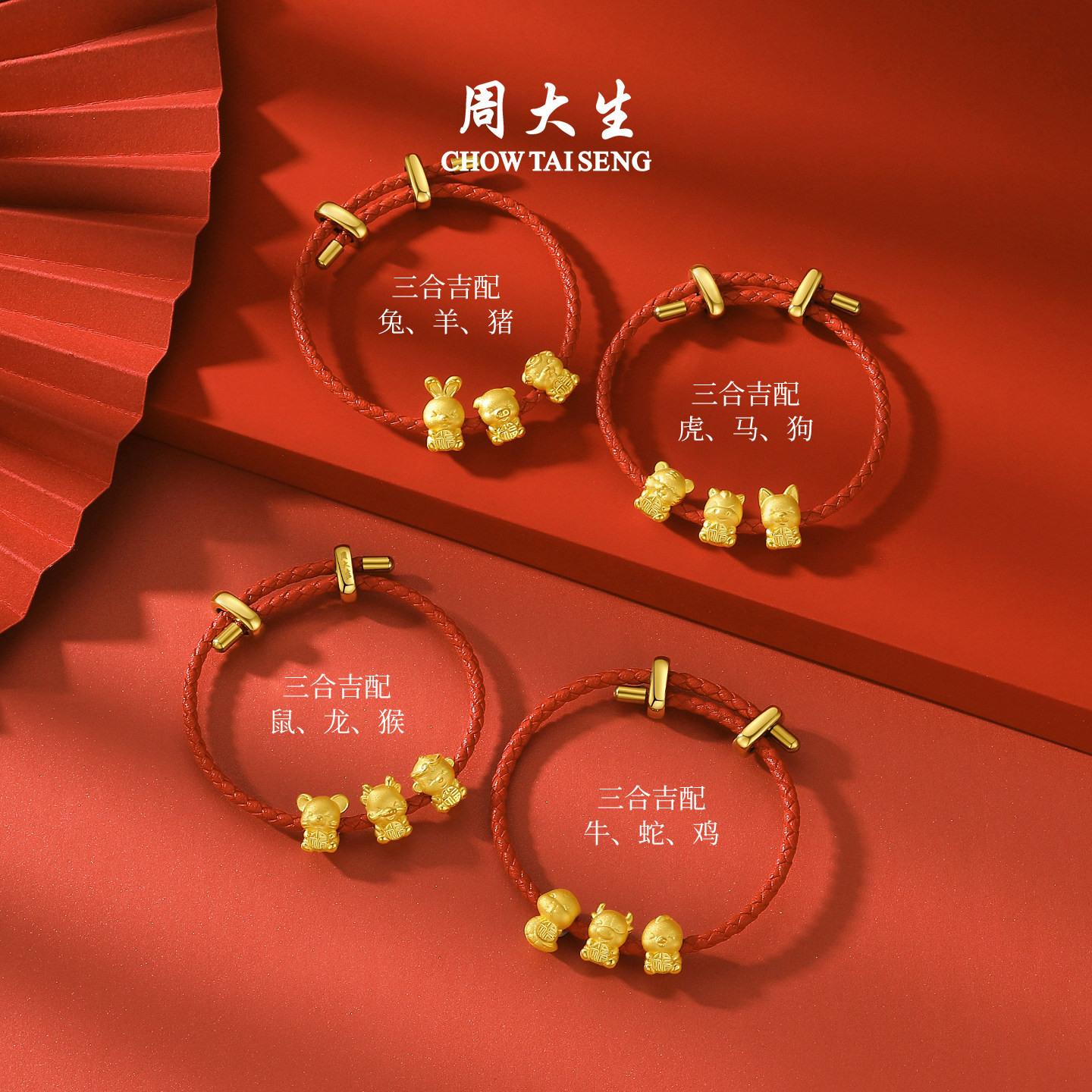 📚 周大生黄金转运珠足金星运十二生肖手链串珠硬金生肖马送女友礼物