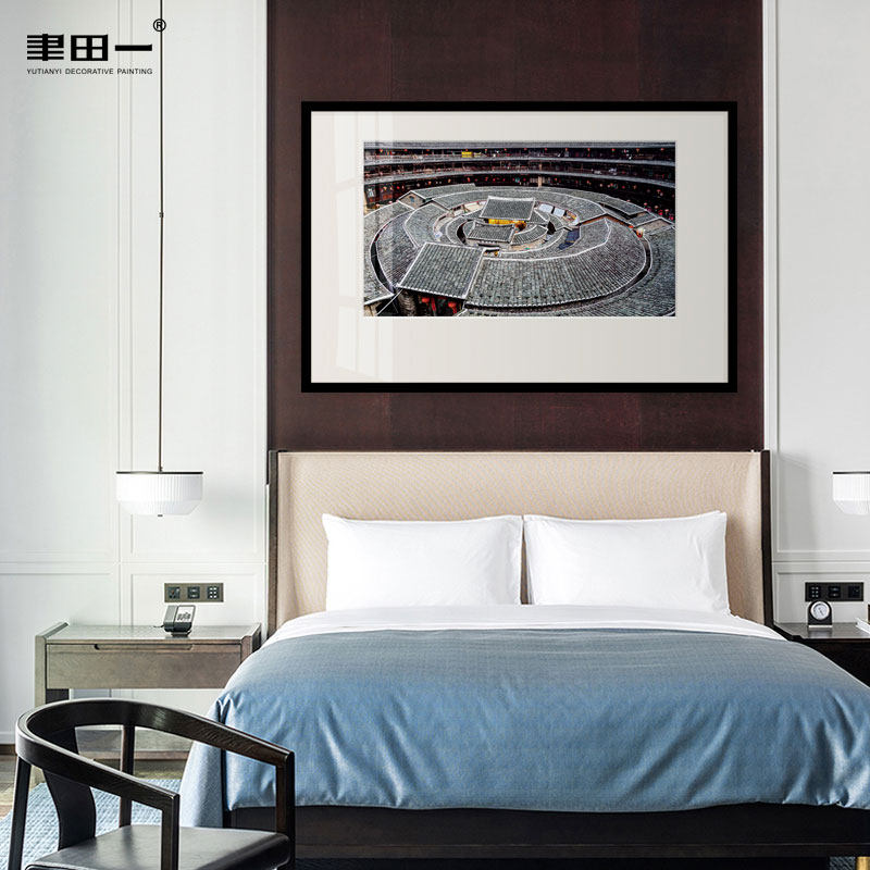 📚 新中式装饰画酒店民宿客厅怀旧照片壁画餐厅卧室土楼建筑摄影挂画