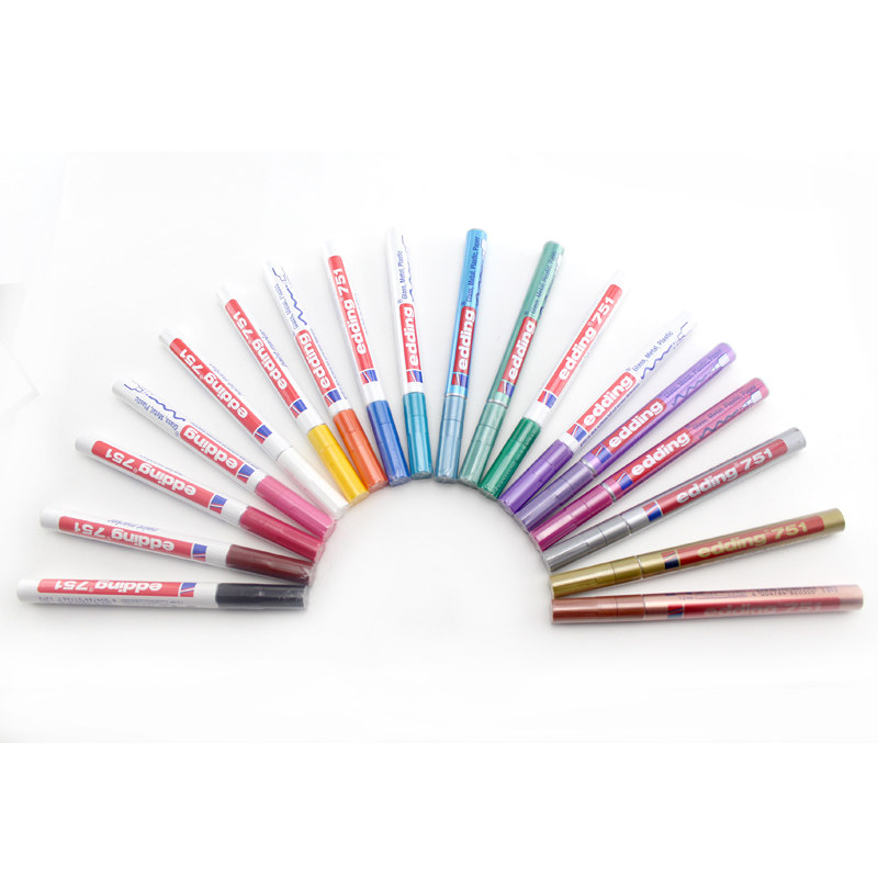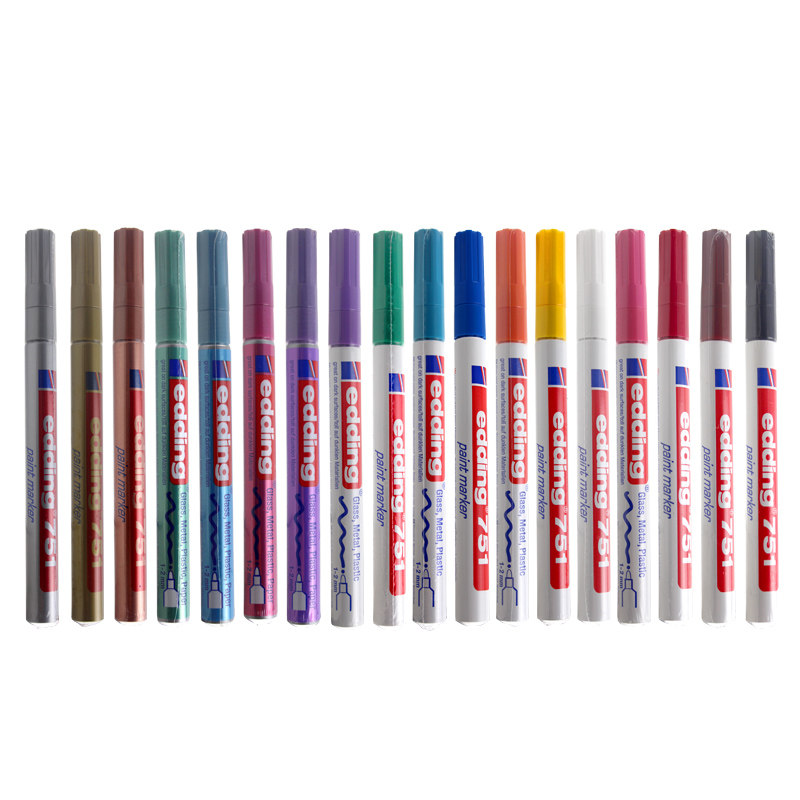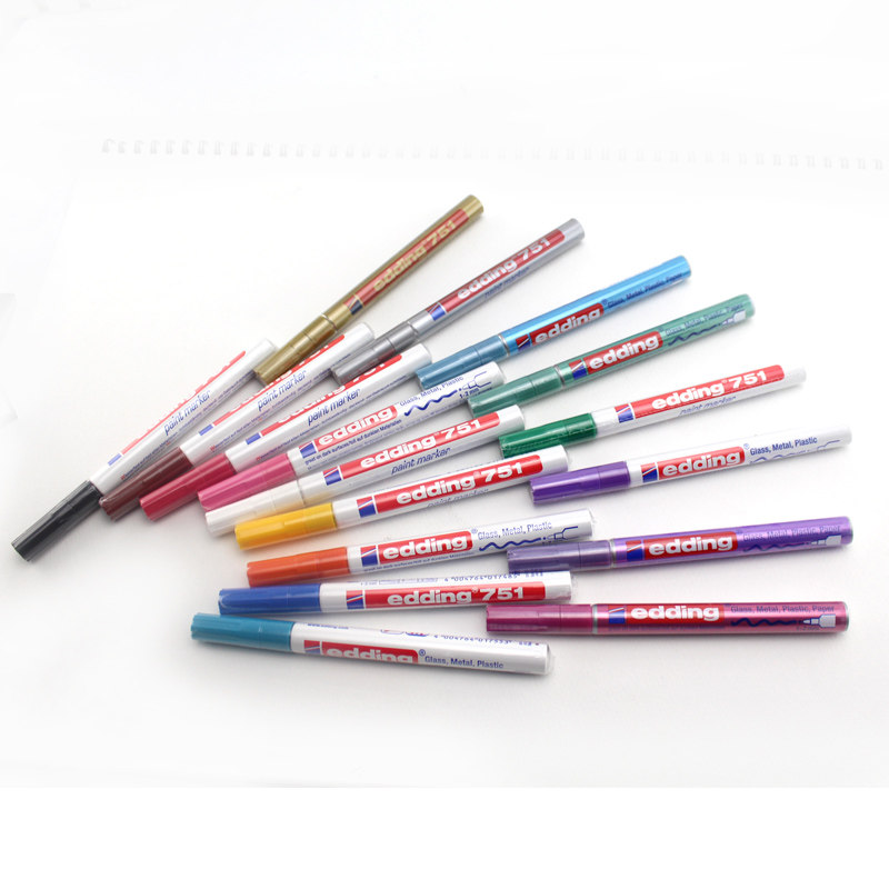 📚 德国艾迪edding油漆笔751细头1.0MM耐酒精耐高温不掉色汽车玻璃工业纯黑记号笔金属标记笔diy专用上色补漆笔