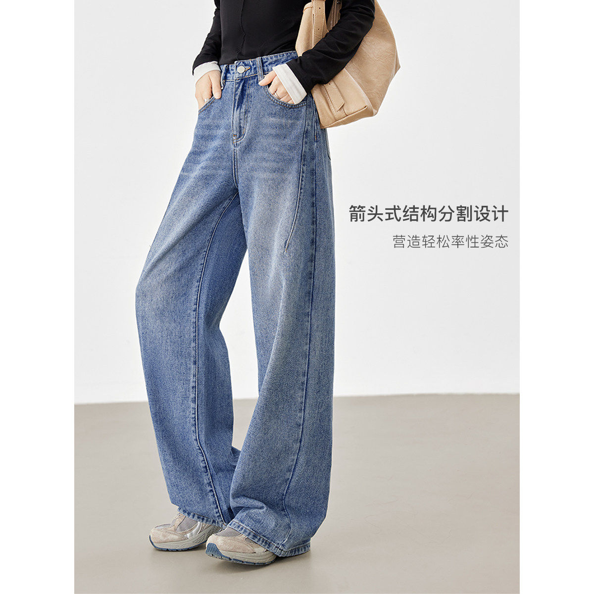 📚 对白经典百搭直筒牛仔裤女2025秋新款分割设计感显瘦宽松休闲裤子