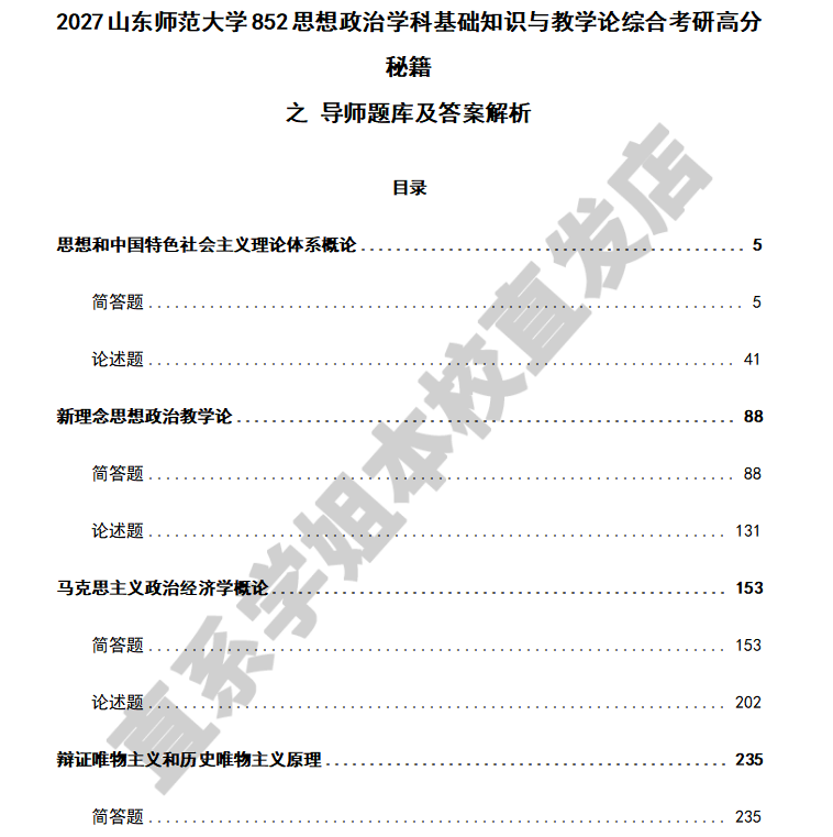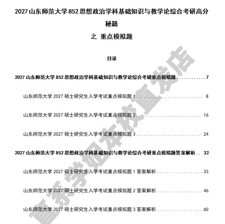📚 2027山东师范大学山师大852思想政治学科基础知识与教学论综合思政考研真题网课复试辅导教材答案资料笔记题库讲义pdf考前冲刺押题