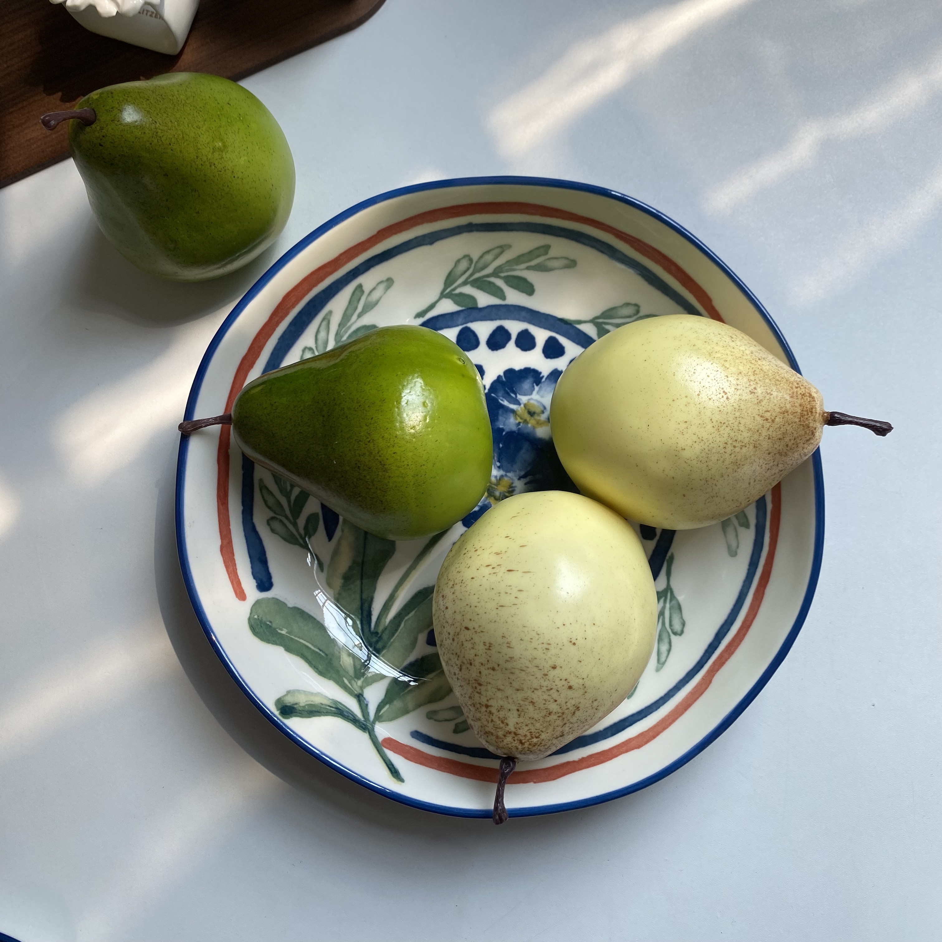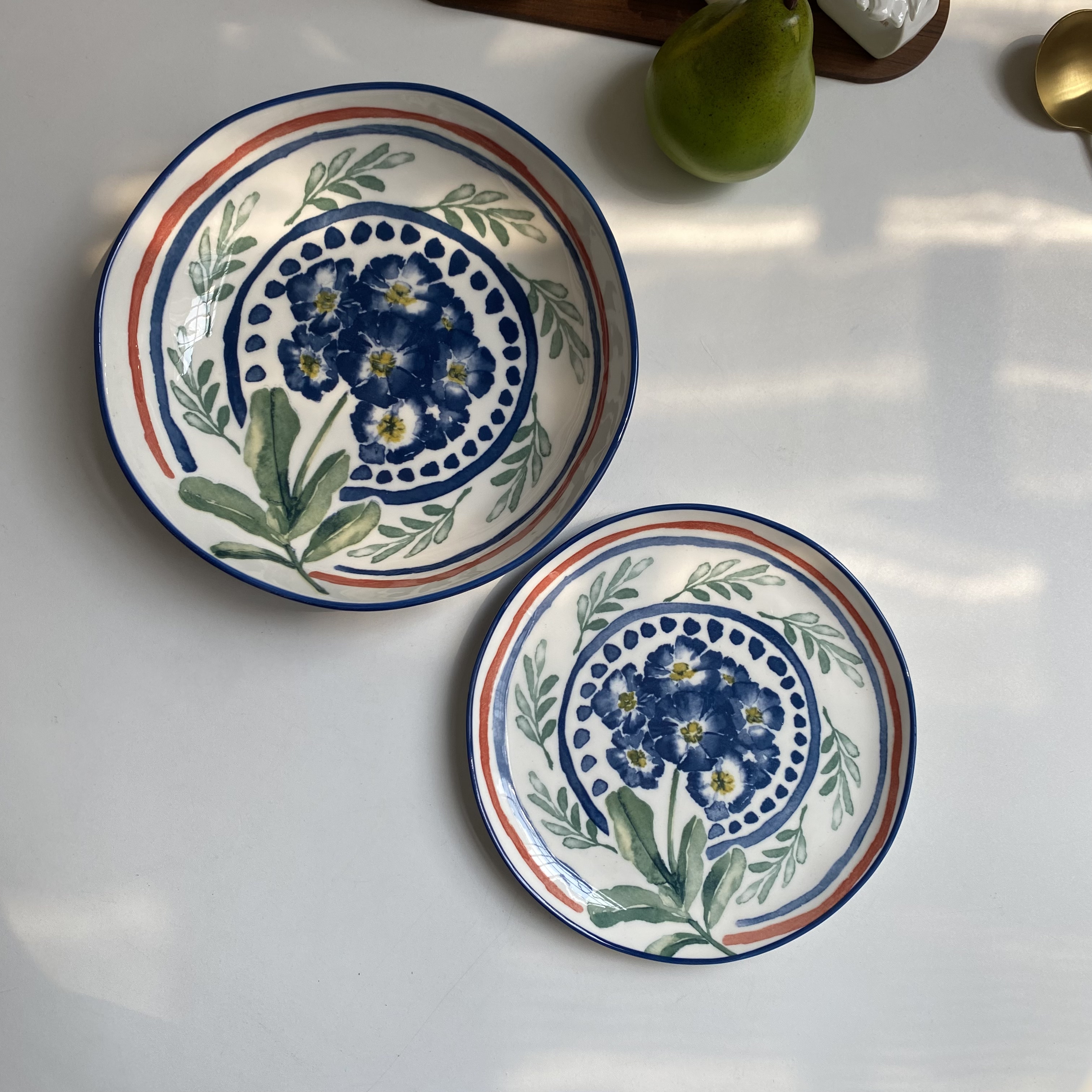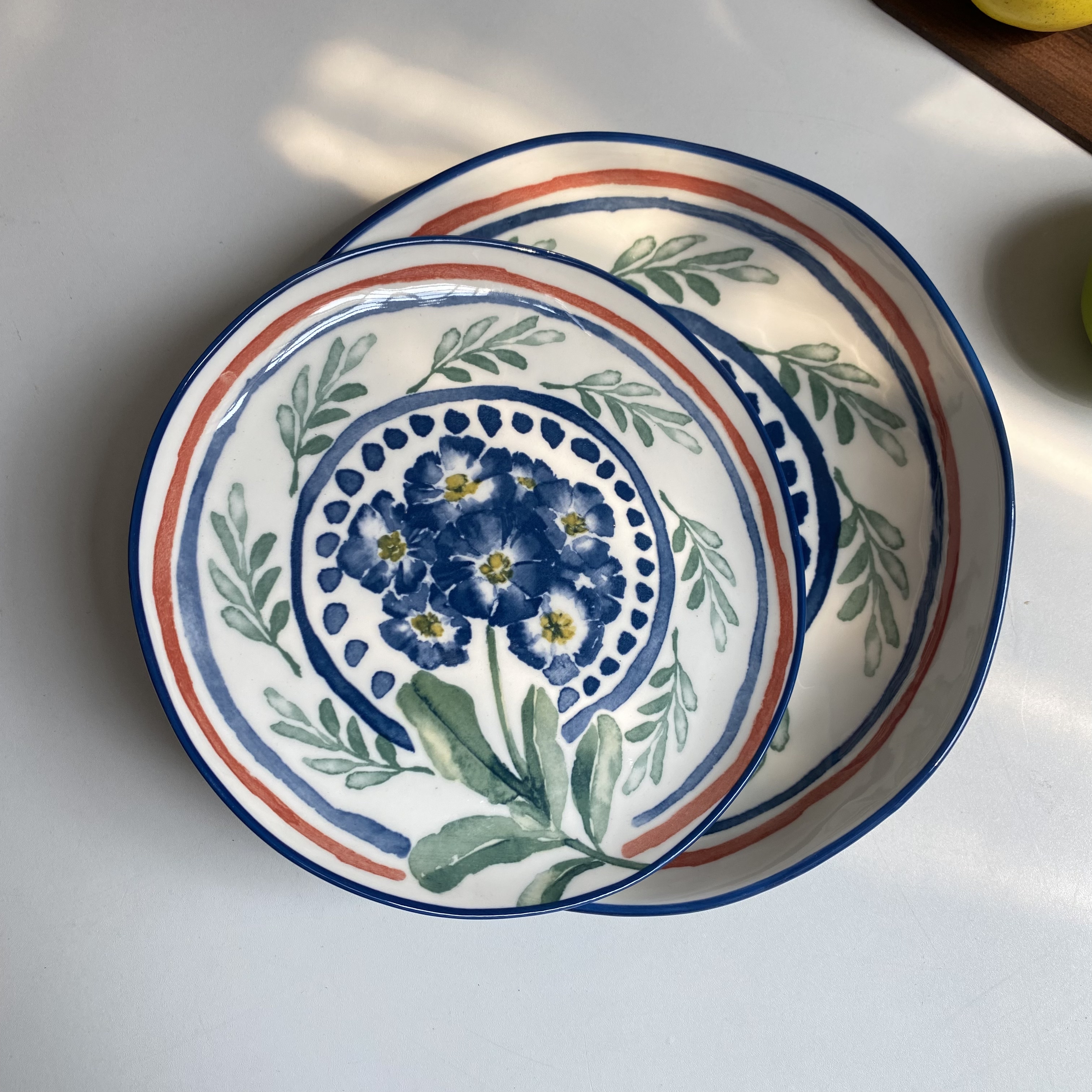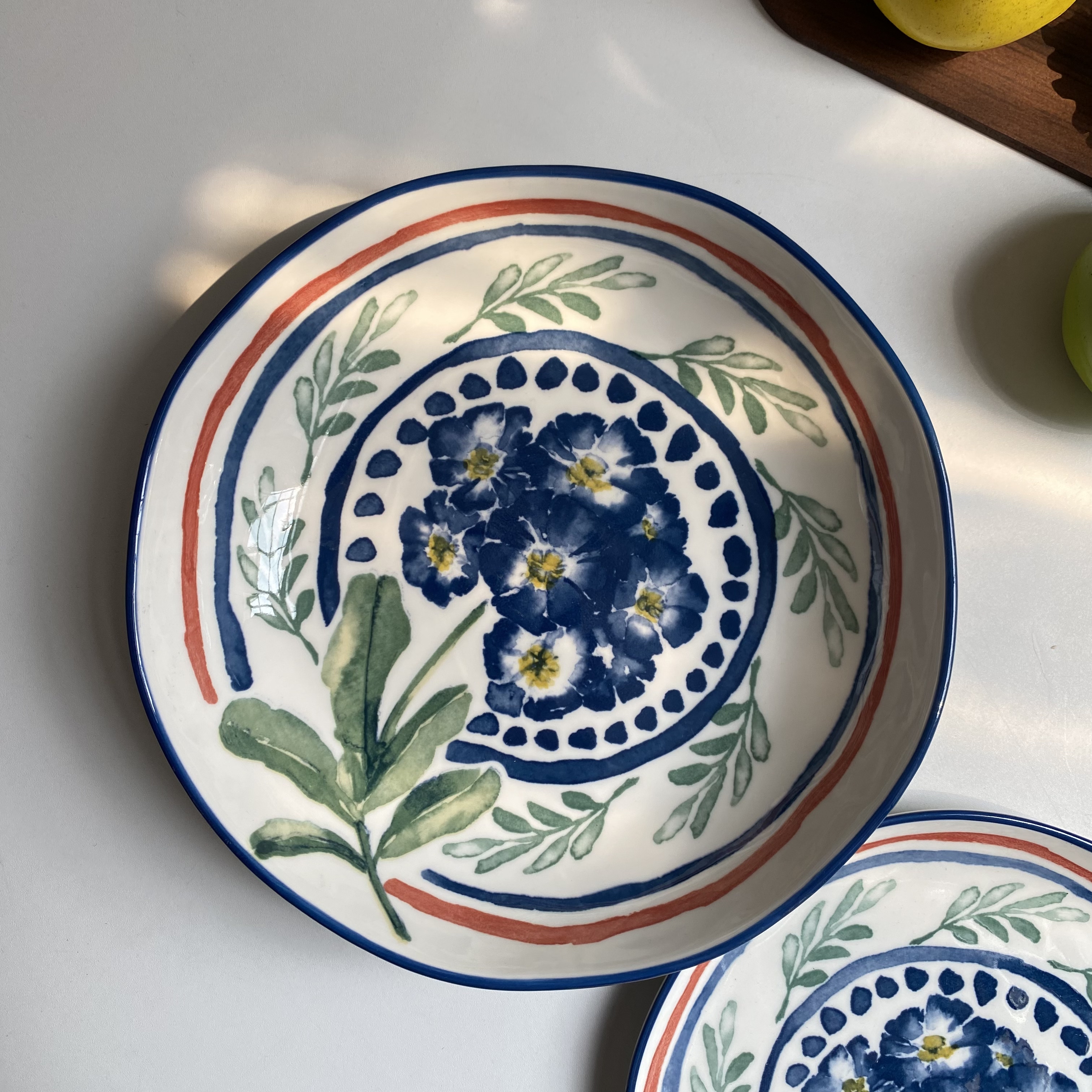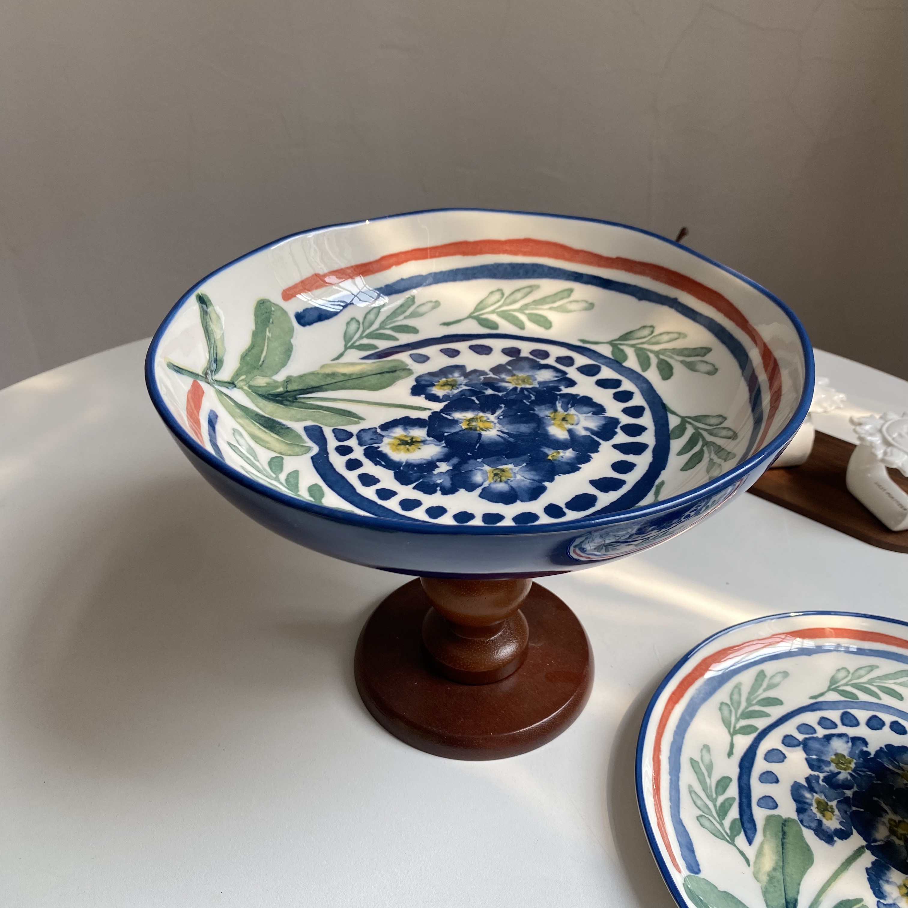 📚 原单尾货 高颜值陶瓷手绘釉下彩盘子菜盘家用深汤盘木质高脚果盘