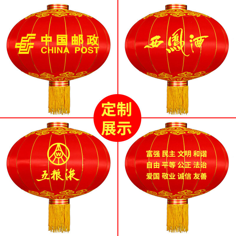 📚 大红灯笼长廊广告福字植绒布绸布大门口阳台户外防水新年春节灯笼