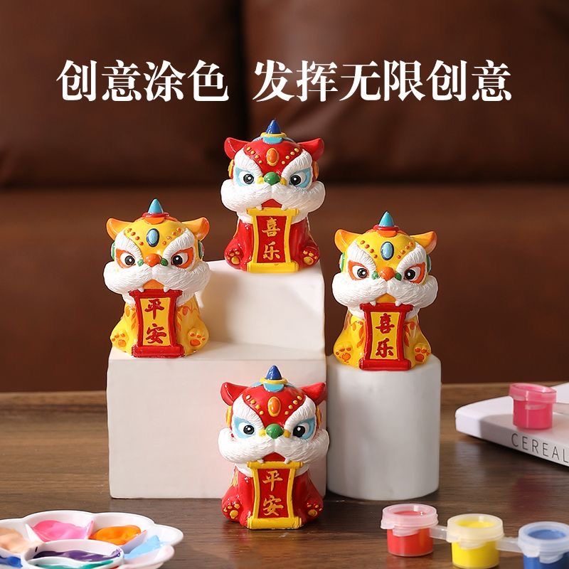 📚 舞狮石膏娃娃白胚3D立体手工DIY彩绘玩具儿童创意涂鸦上色活动