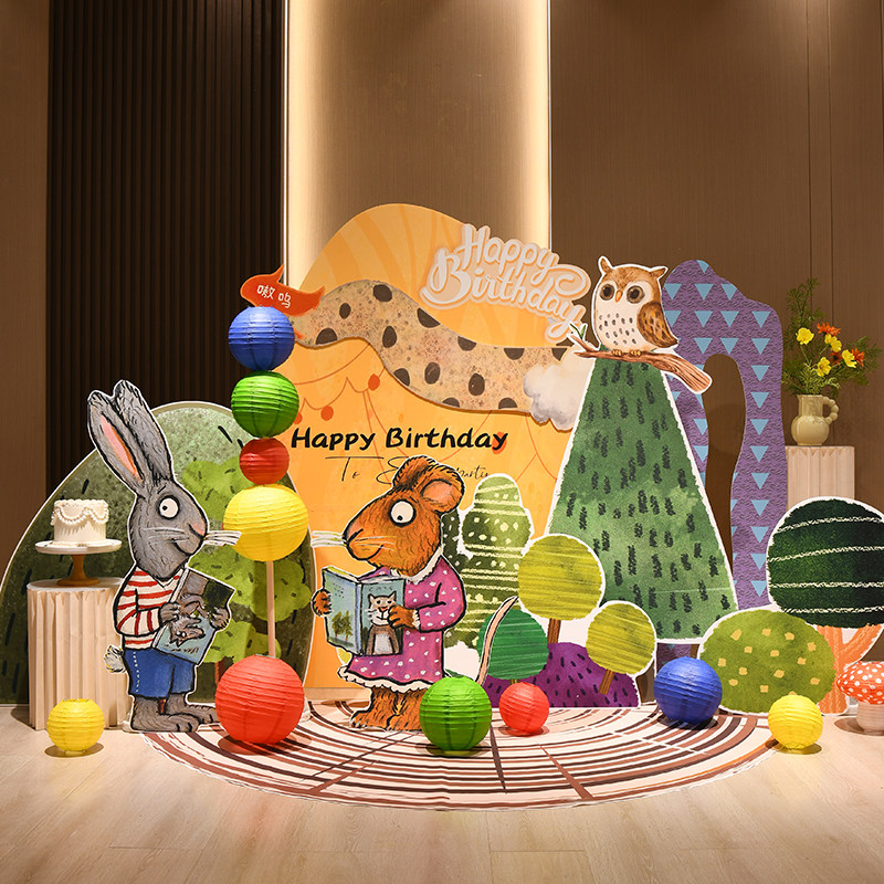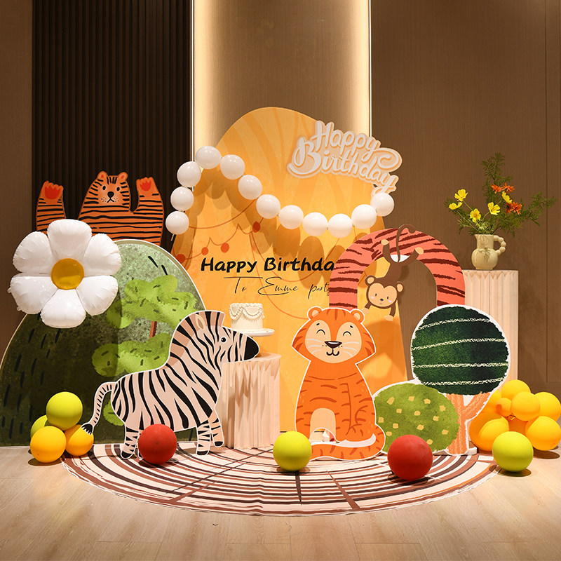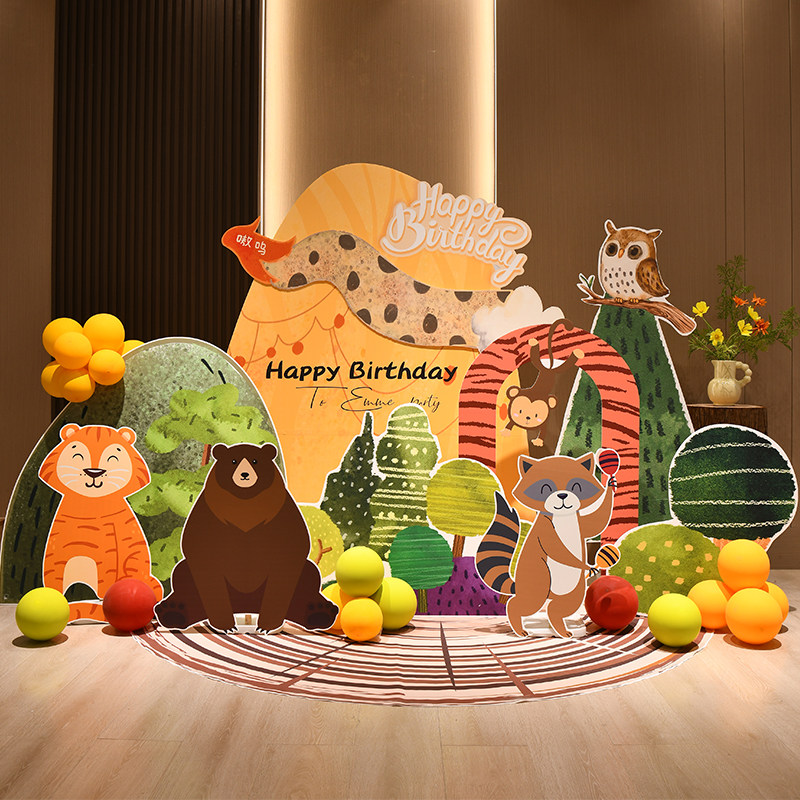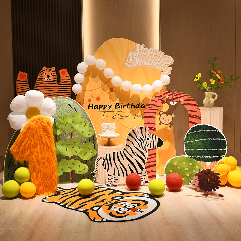 📚 宝宝一周岁生日布置场景装饰网红森系婴儿满月百天气球背景墙kt板