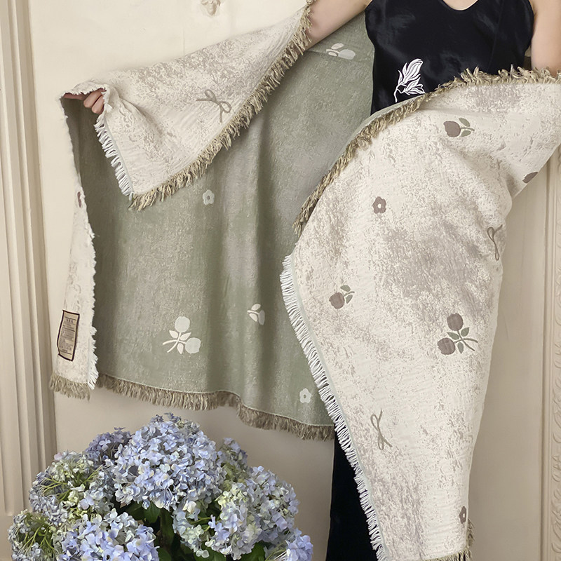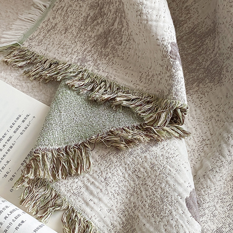 📚 全棉毯子四层纱布提花盖毯多功能夏凉被空调薄被子纯棉毛巾被披肩