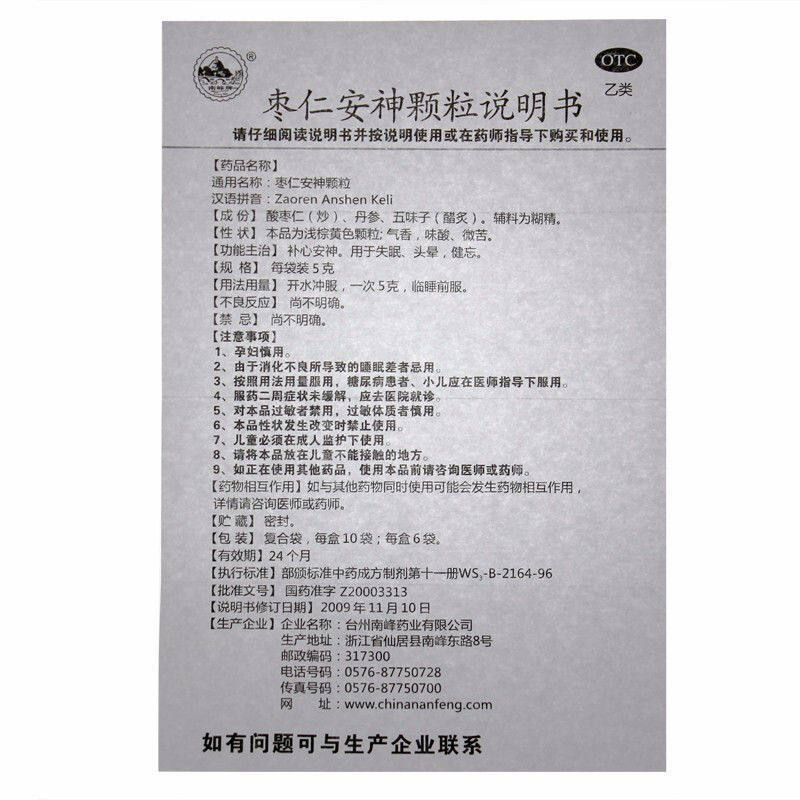 📚 南峰 枣仁安神颗粒 5g*6袋/盒 补心安神失眠头晕健忘
