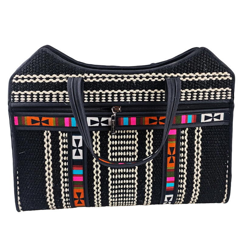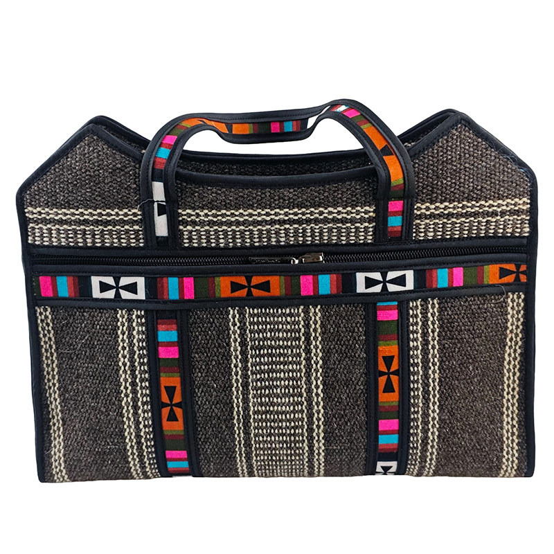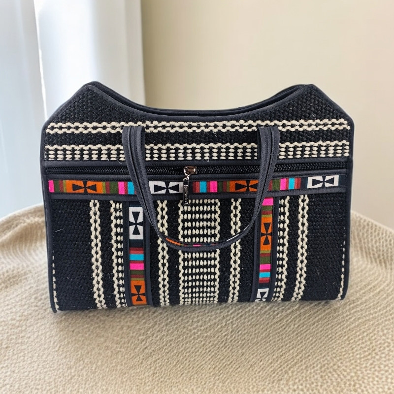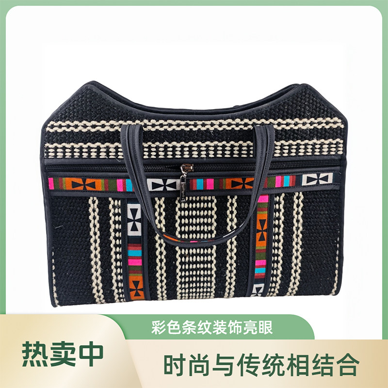 📚 藏式风格条纹手提包拼色挎包羊湖特产民族特色化妆包