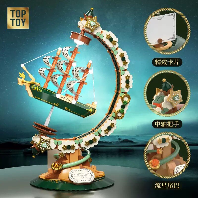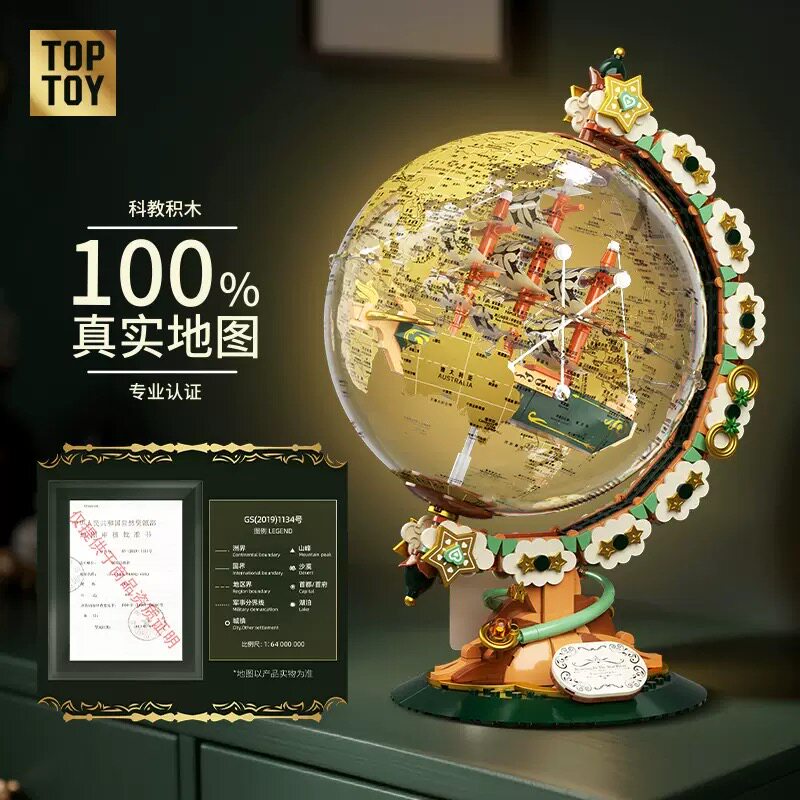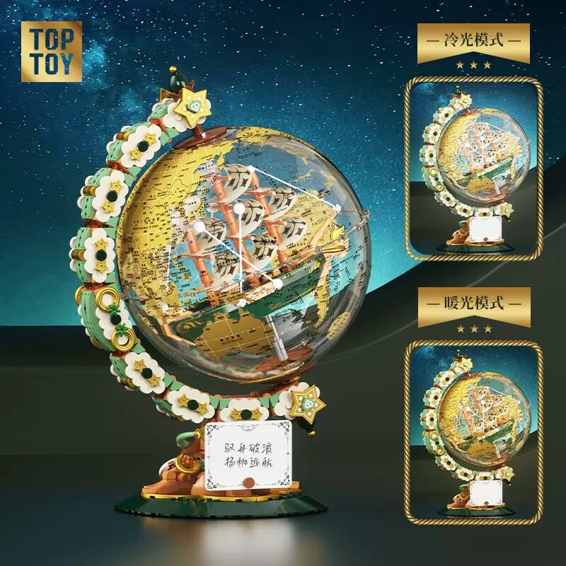📚 TOPTOY潮玩系列TC1421航行者地球仪高难度拼装小颗粒积木玩具模型