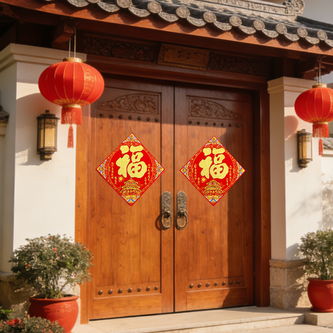 📚 福字门贴超大号绒布福字贴新年春节特大高档客厅入户门别墅车库门