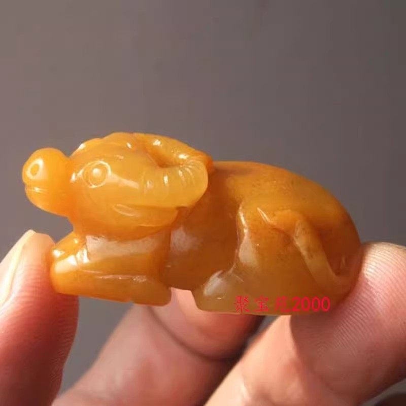 📚 立体生肖牛吊坠黄玉男女款生肖玉坠玉佩a货天然云南黄龙玉牛挂件