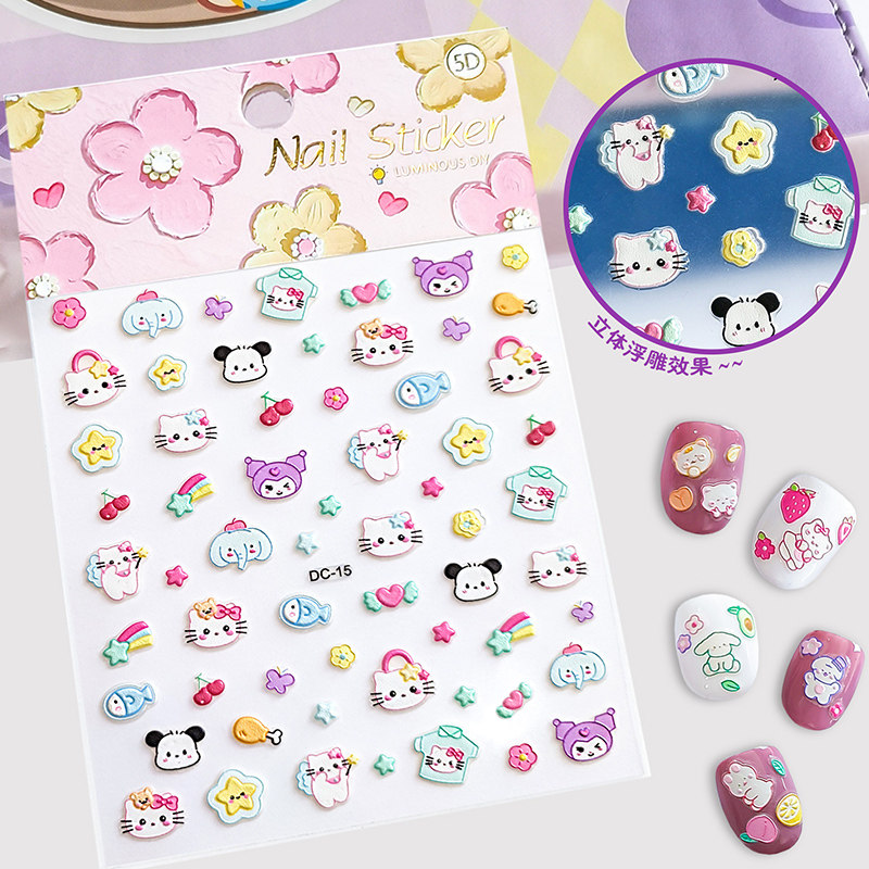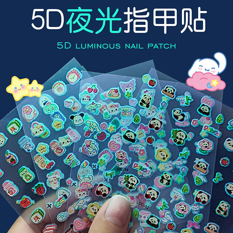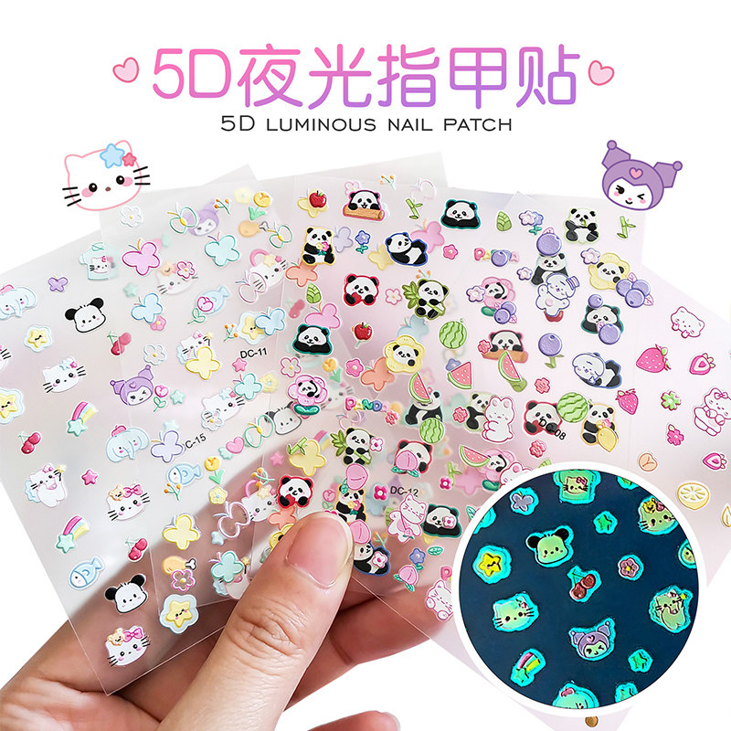 📚 夜光浮雕指甲贴儿童女孩5D立体万圣节小孩宝宝卡通可爱多巴胺新款高颜值美甲手机笔杆贴自粘荧光贴脚指甲贴片