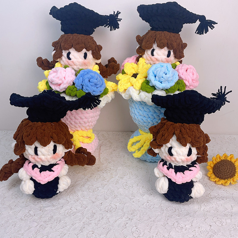 📚 成品毕业娃娃手工编织大学毕业博士帽礼物钩织玩偶挂件送朋友花束
