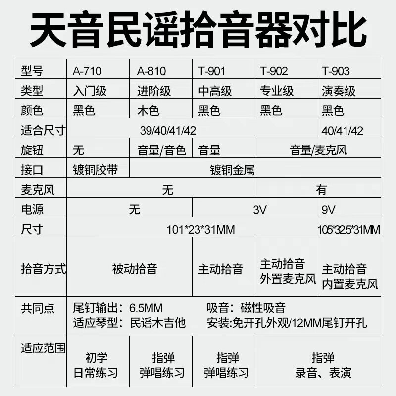📚 天音拾音器A710A810吉他拾音器木吉他拾音器免开孔扩音拾音器吉他