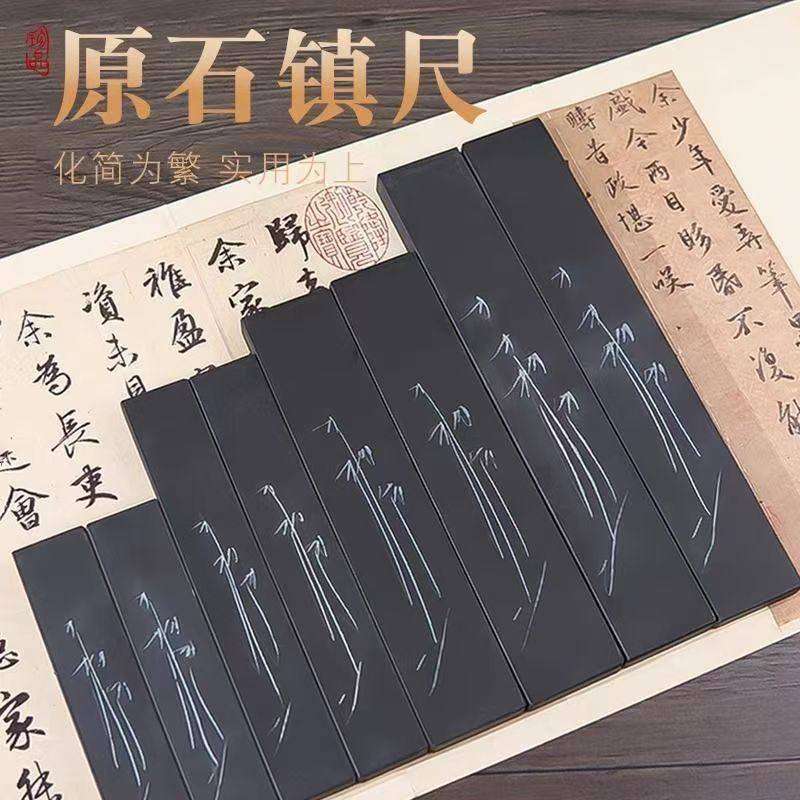 📚 瑕疵原石镇纸大理石镇尺文房四宝书法压纸镇尺压书条学生压尺砚台