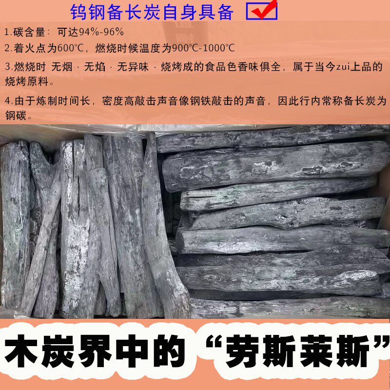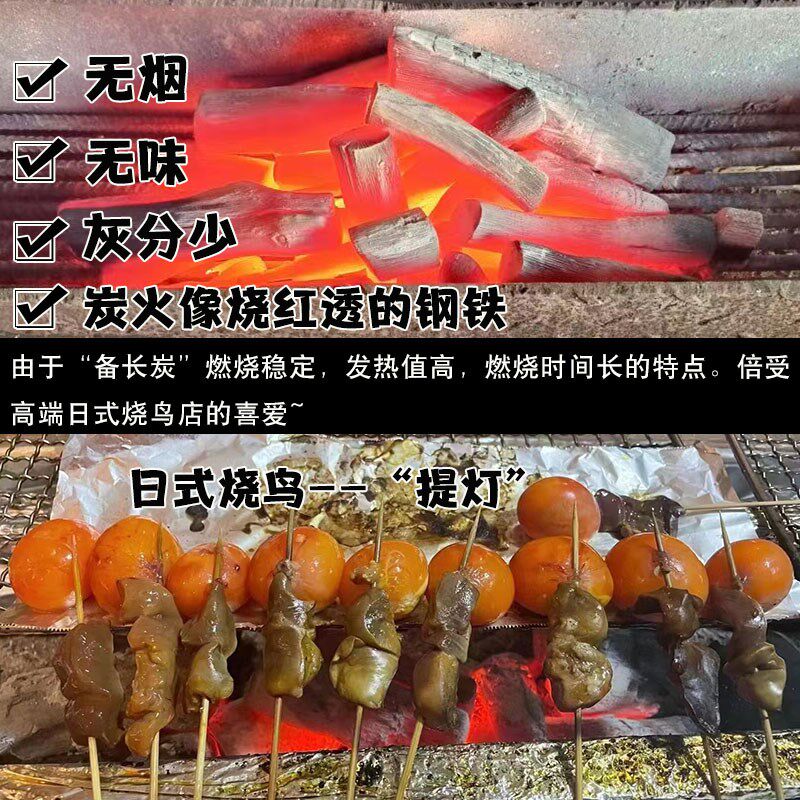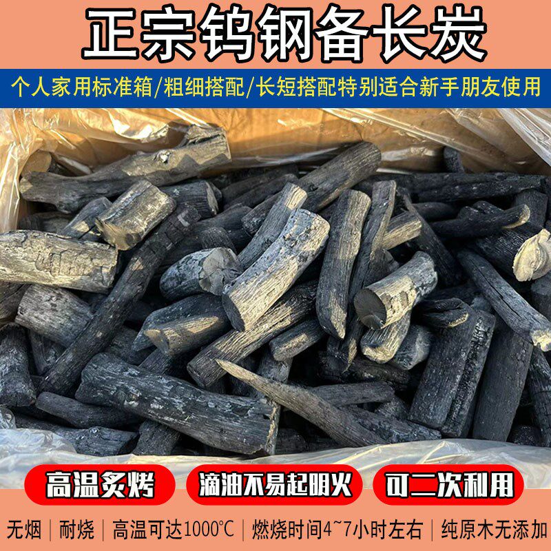 📚 钨钢备长炭钢炭烤肉木炭烧鸟店用原木高温炭无烟耐烧煮茶火锅碳