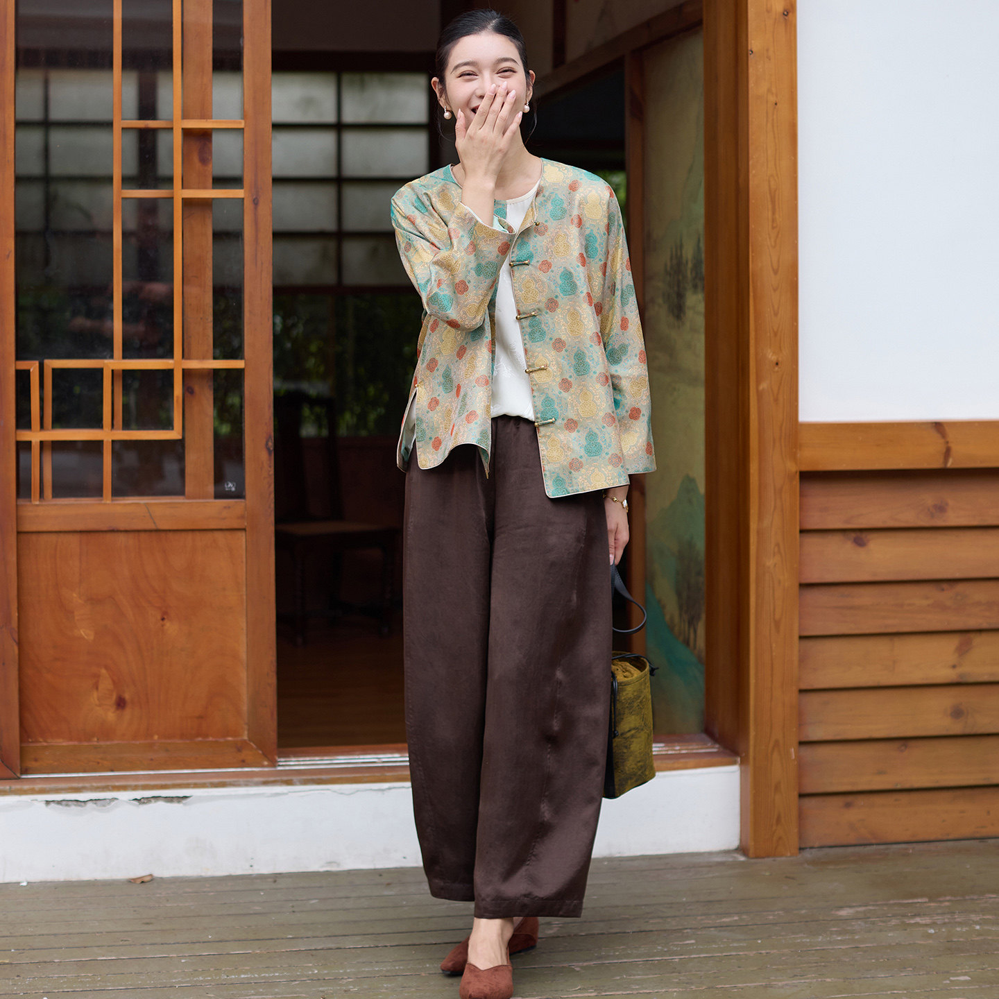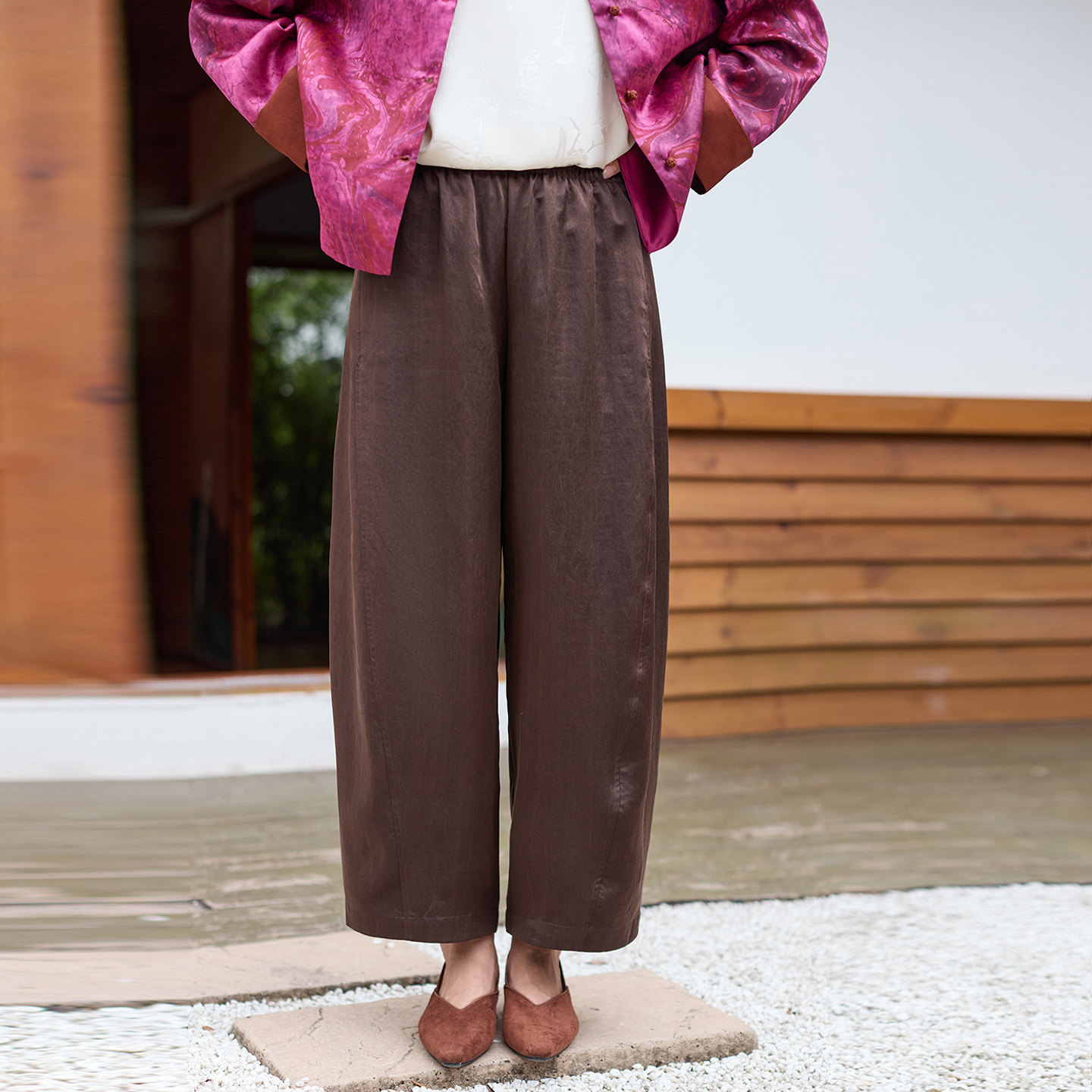 📚 菲伊唐真丝素缎香云纱宽松显瘦高腰百搭松紧腰香蕉阔腿裤女休闲裤