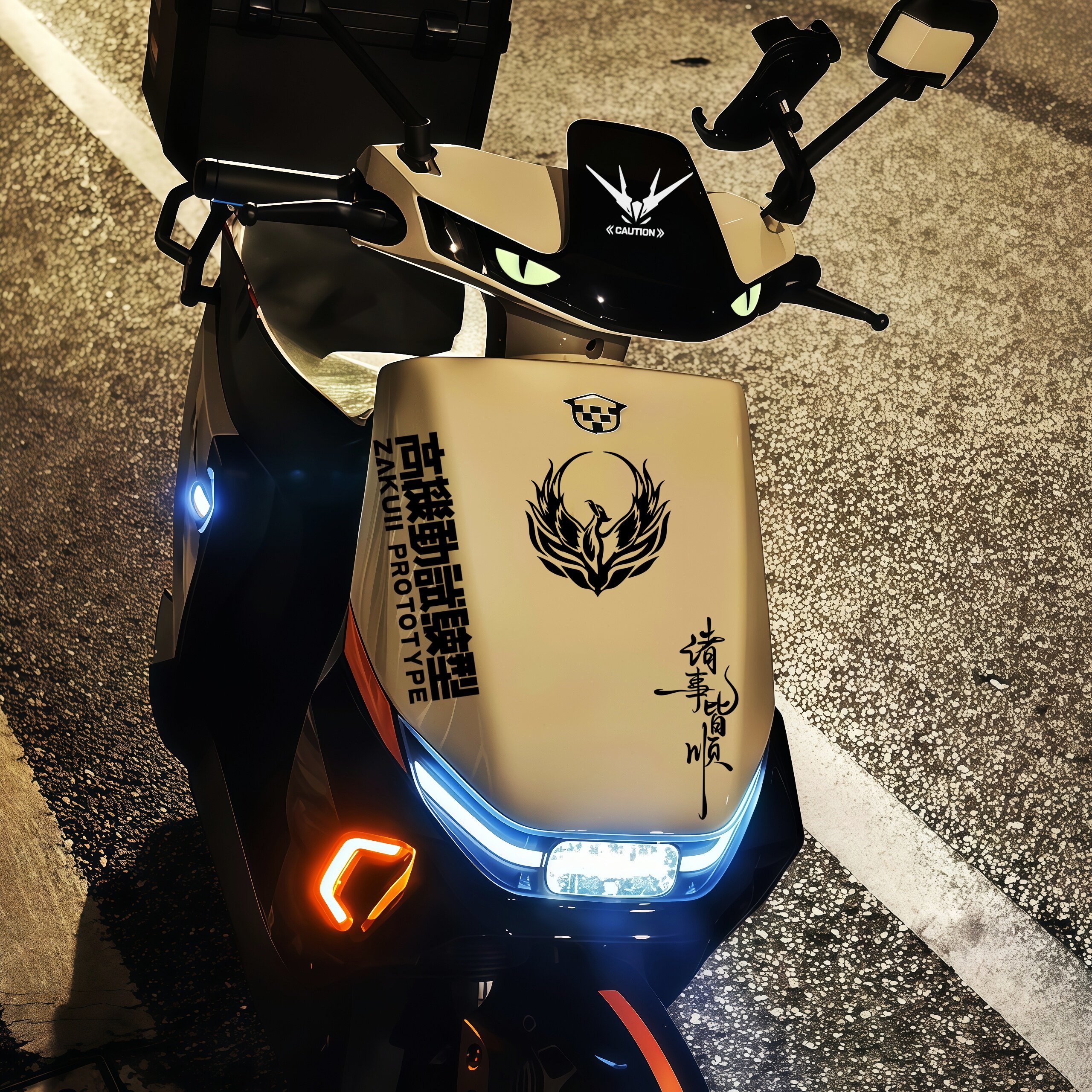 📚 适用26年绿源S70Pro车头高达机械定风翼改装饰遮划痕车身反光贴花