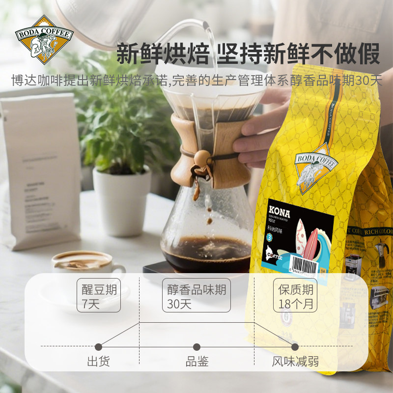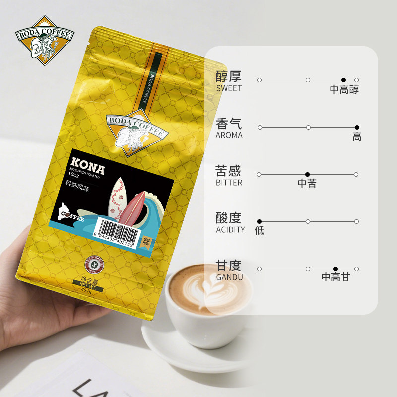 📚 博达夏威夷科纳咖啡豆新鲜烘焙生豆 可研磨纯黑咖啡粉454克袋装