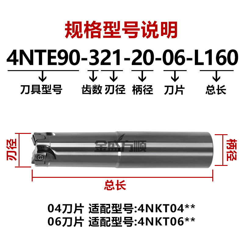 📚 金盛方顺4NTE90快进给内冷锁牙头方肩90度铣刀杆4NTF90清角铣刀盘
