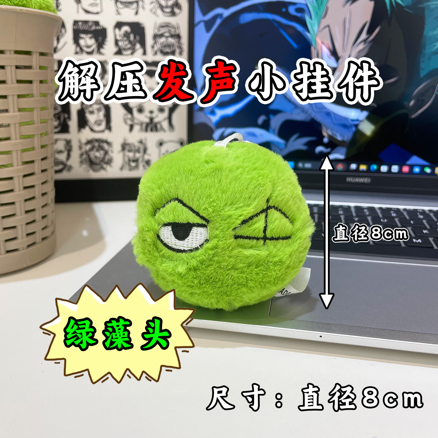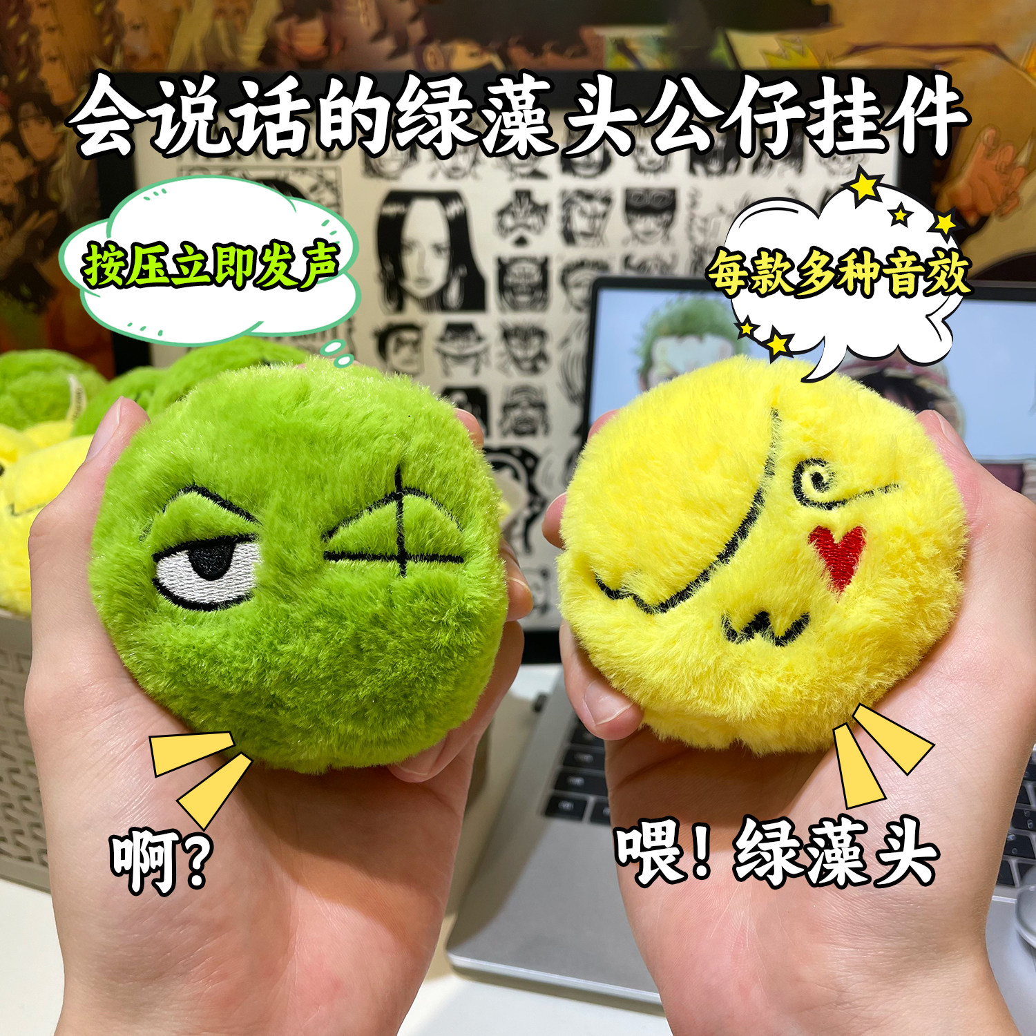 📚 海贼王会说话的发声绿藻头索隆娃娃钥匙扣挂件毛绒绒玩具可换电池