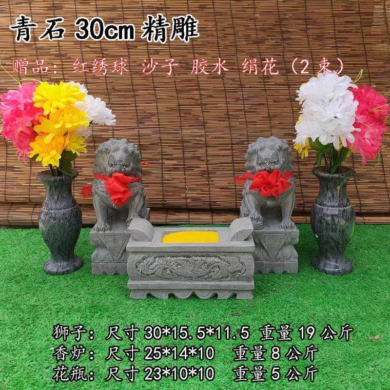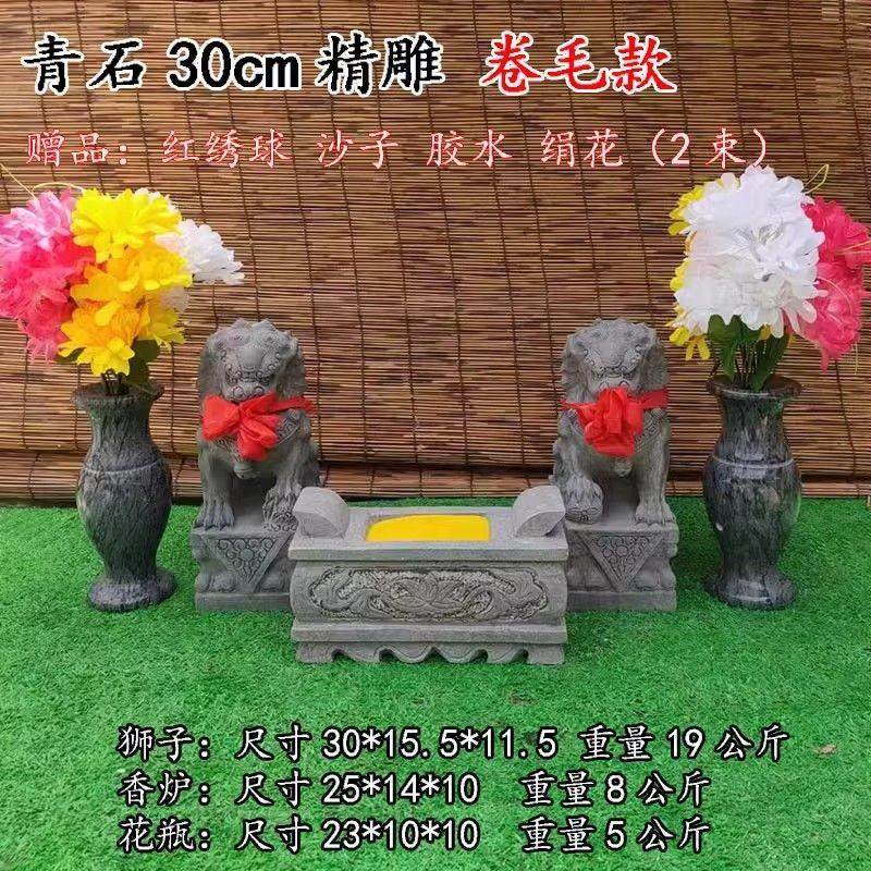 📚 墓前石狮子一对汉白玉青石头小号天然香炉大理石花瓶墓碑石雕摆件