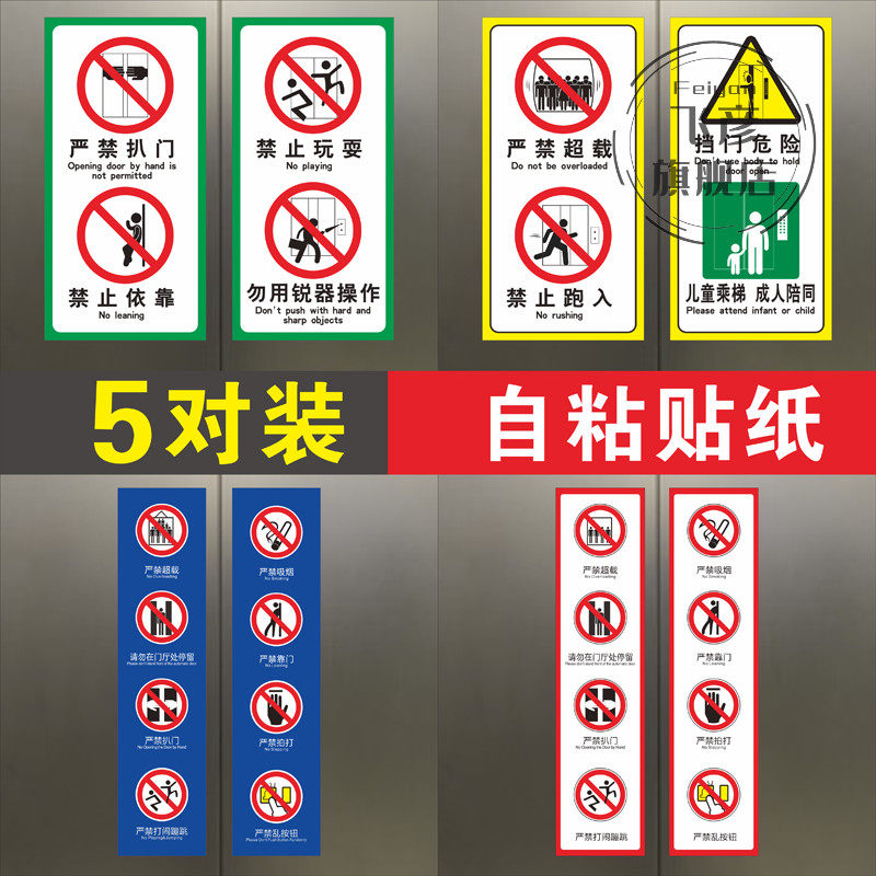 📚 电梯安全标识贴严禁h靠门标识牌乘梯须知扶梯安全警示标示提示牌