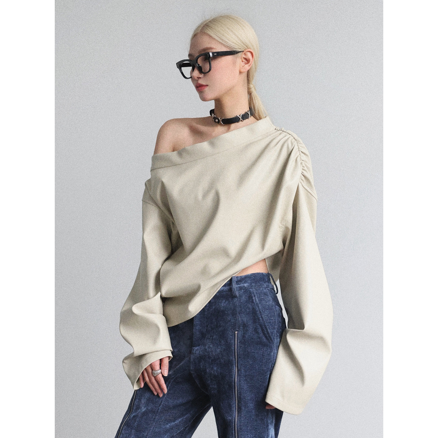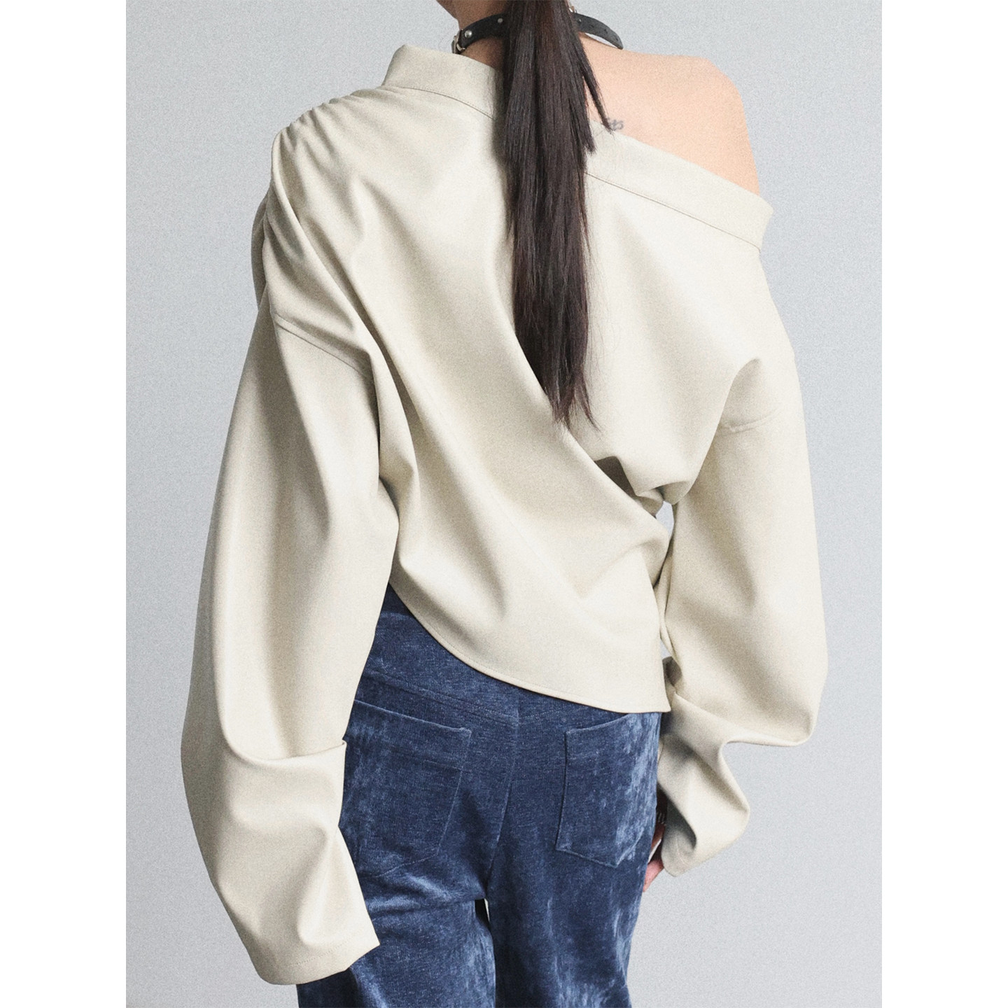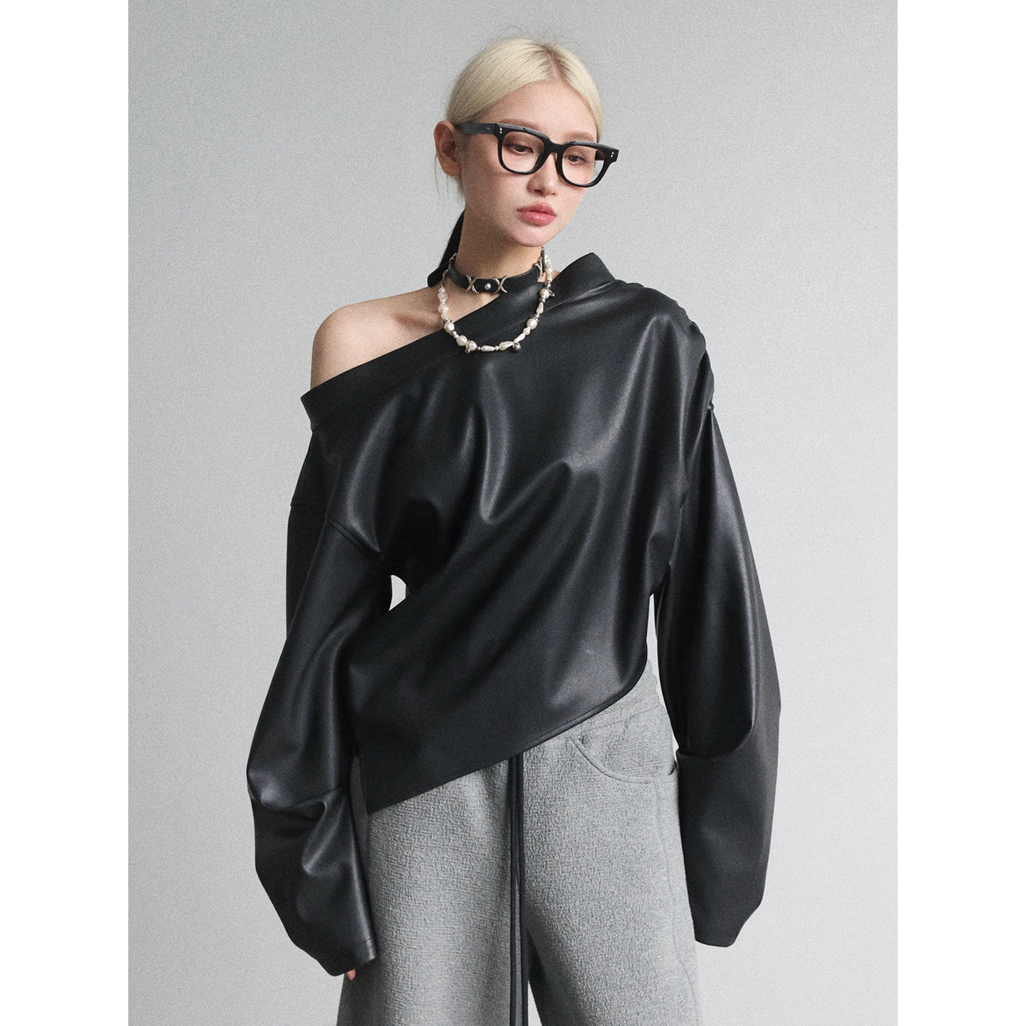 📚 无以幻象 WUYIHUANXIANG 不对称斜领罩衫皮衣