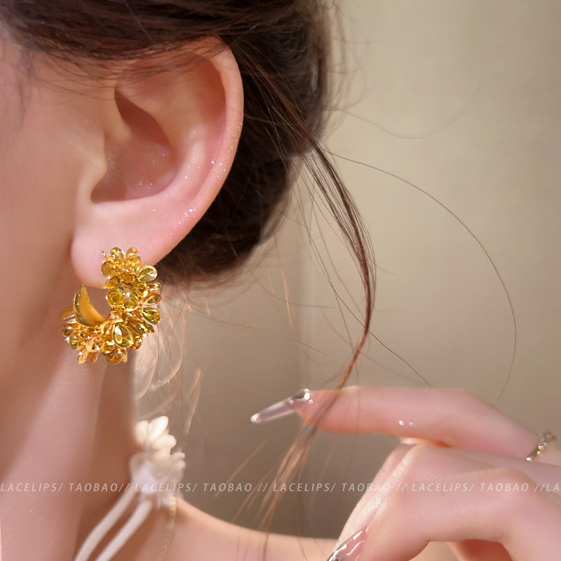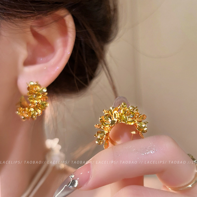 📚 繁花锦簇~金色花朵C型耳环2026新款爆款高级感耳钉复古气质耳饰潮