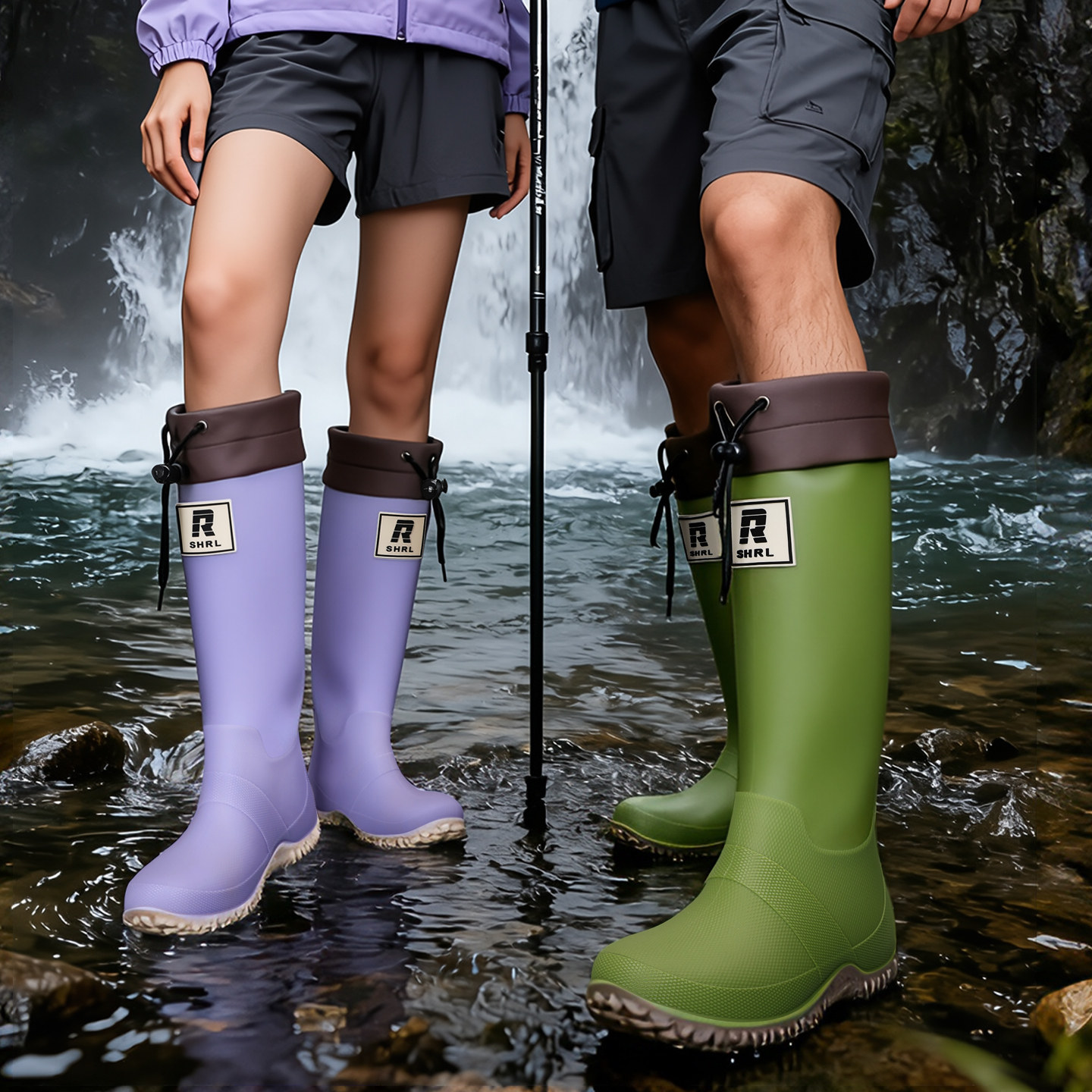 📚 可折叠雨鞋女款男款雨林登山雨靴户外徒步防滑时尚新款束口防水鞋