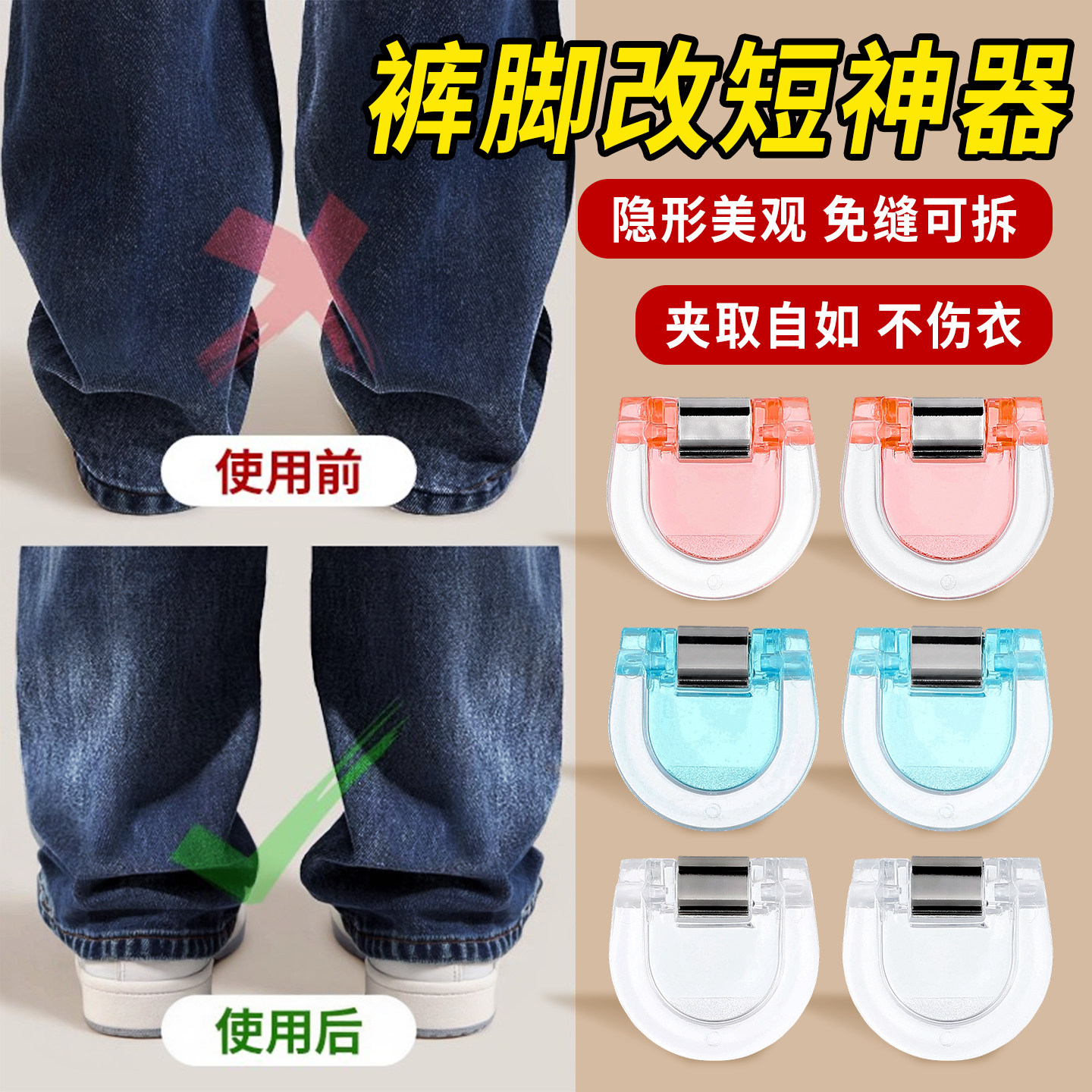 📚 裤脚防拖地神器隐形挽边扣裤子太长改短调节扣裤腿固定夹收口神器