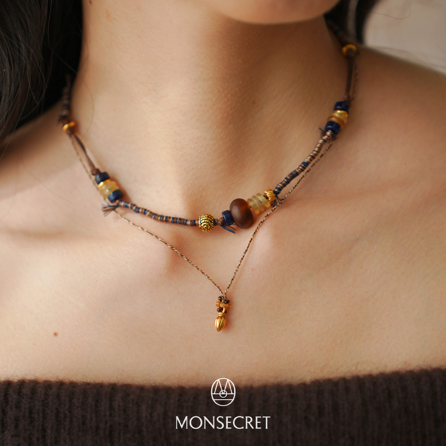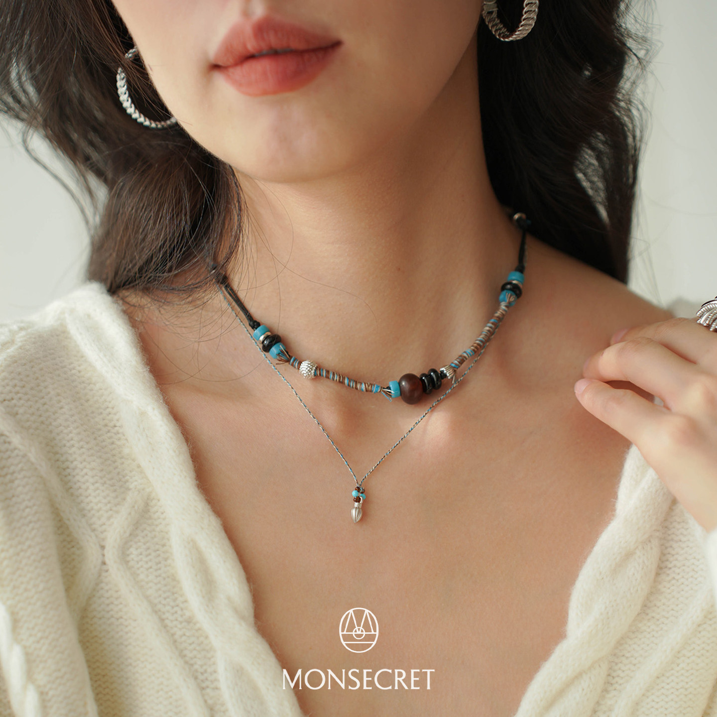 📚 MONSECRET 棕榈籽细绳彩线项链 原创设计休闲度假感锁骨链 默叙