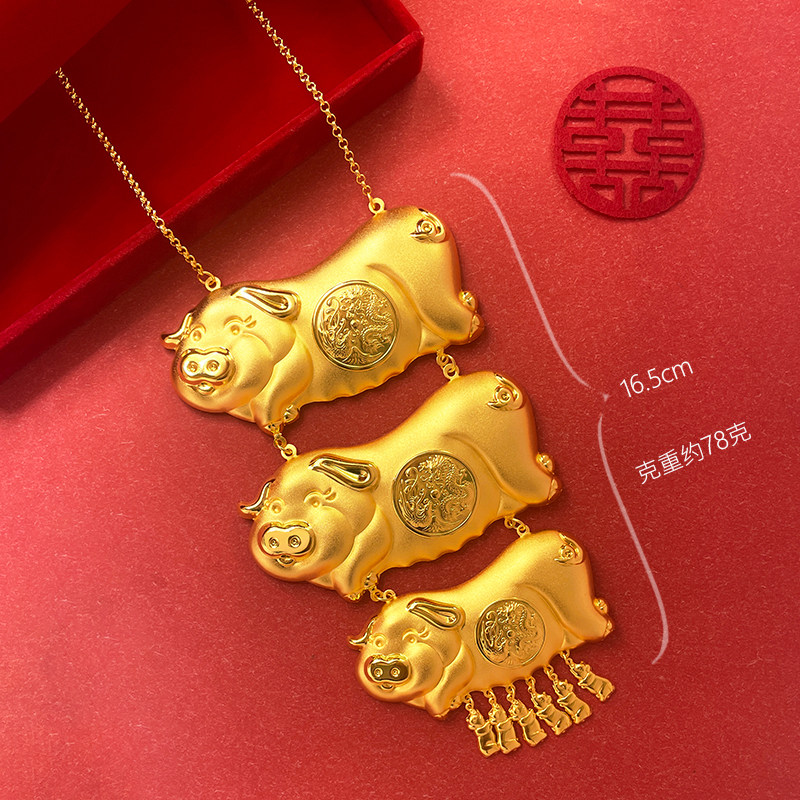 📚 喷砂龙凤猪牌链镀黄金色项链新娘结婚首饰磨砂龙凤项链光面亚光金