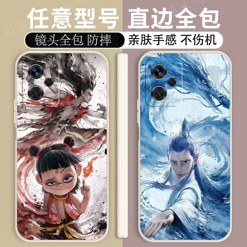 📚 红米note12rpro手机壳22101317C哪吒之魔童闹海直边软壳软胶学生潮流耐脏硅胶卡通全包边防摔磨砂女保护套潮